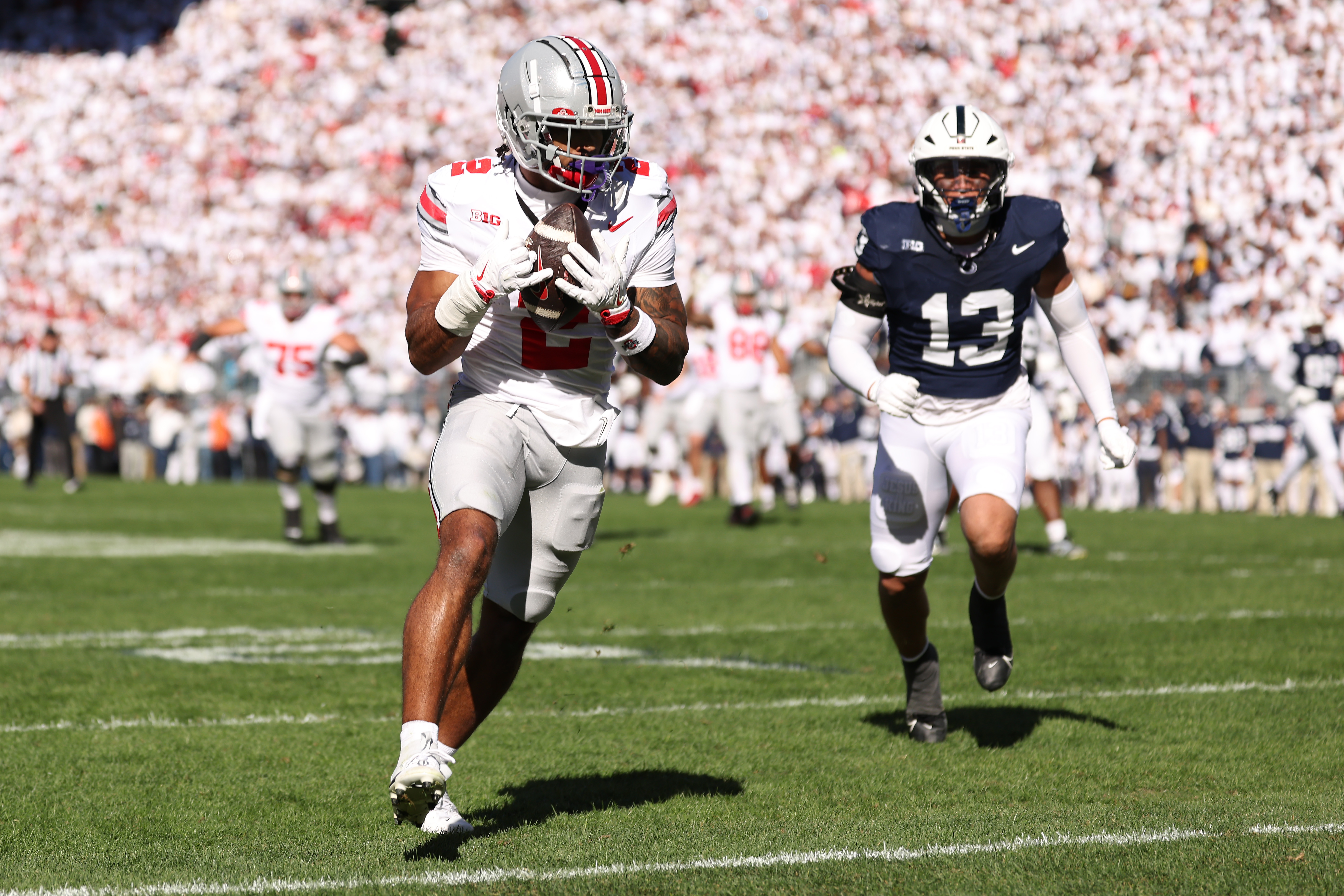 Howard threw an early pick six to Zion Tracy that gave the Nittany Lions a 10-0 lead. But Howard then found Emeka Egbuka on a 25-yard touchdown throw to get the Buckeyes back within three. Then Ohio State took the lead with a 21-yard touchdown reception by Brandon Inniss in the second quarter.