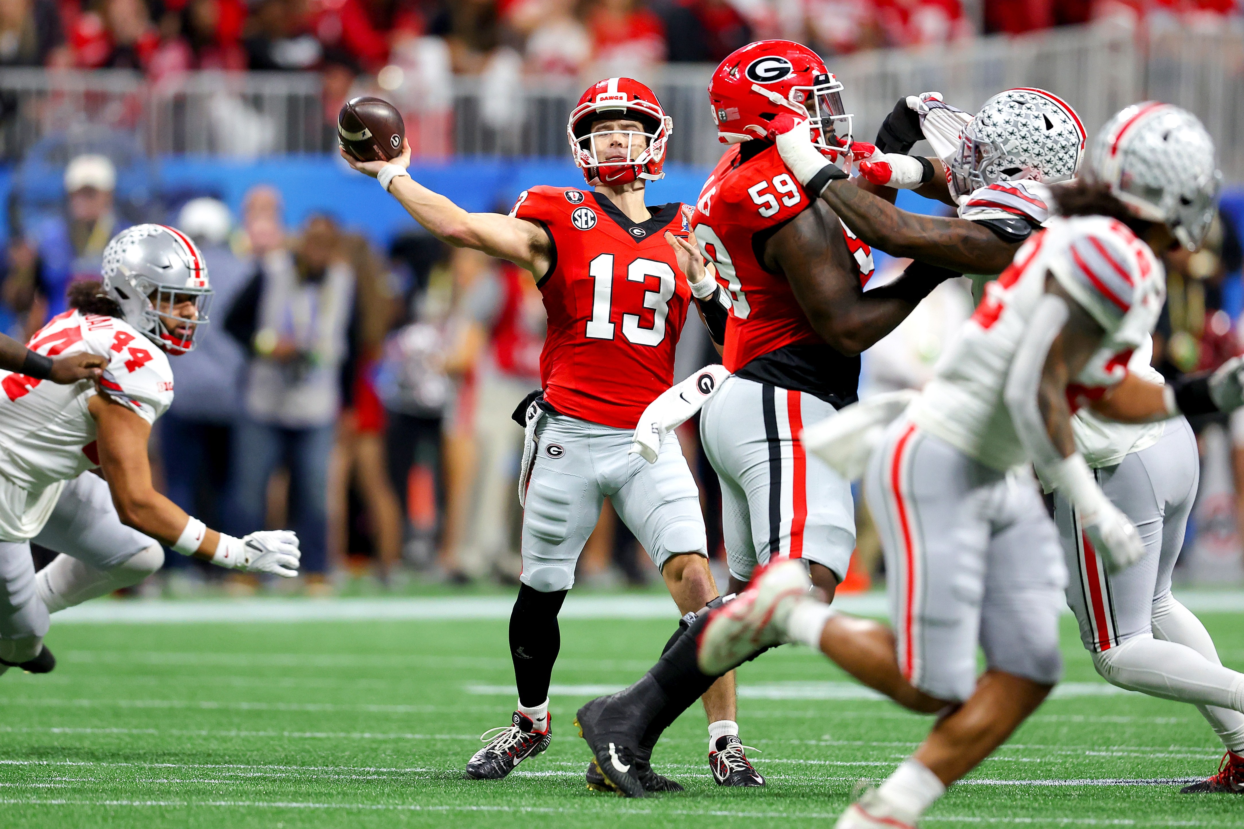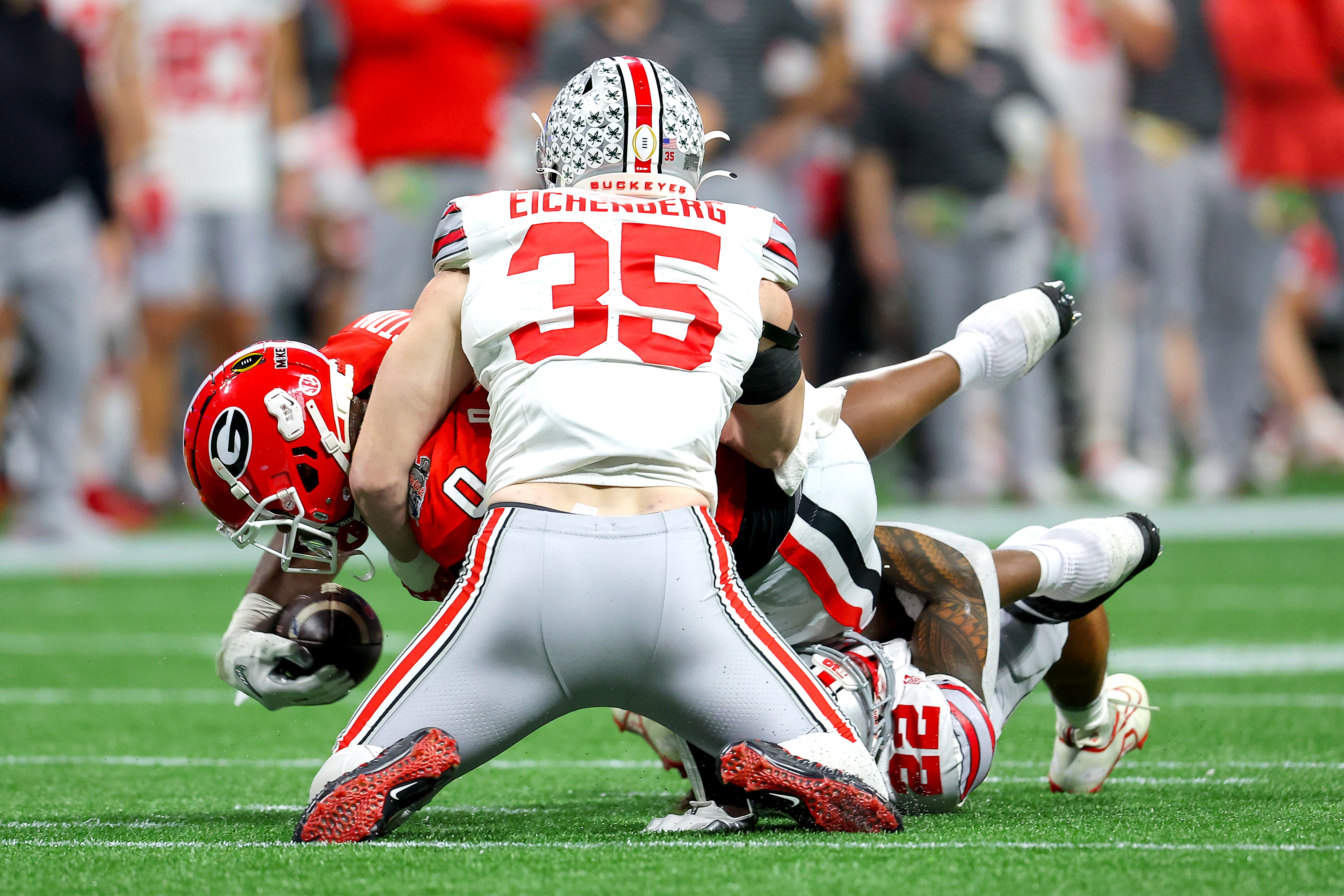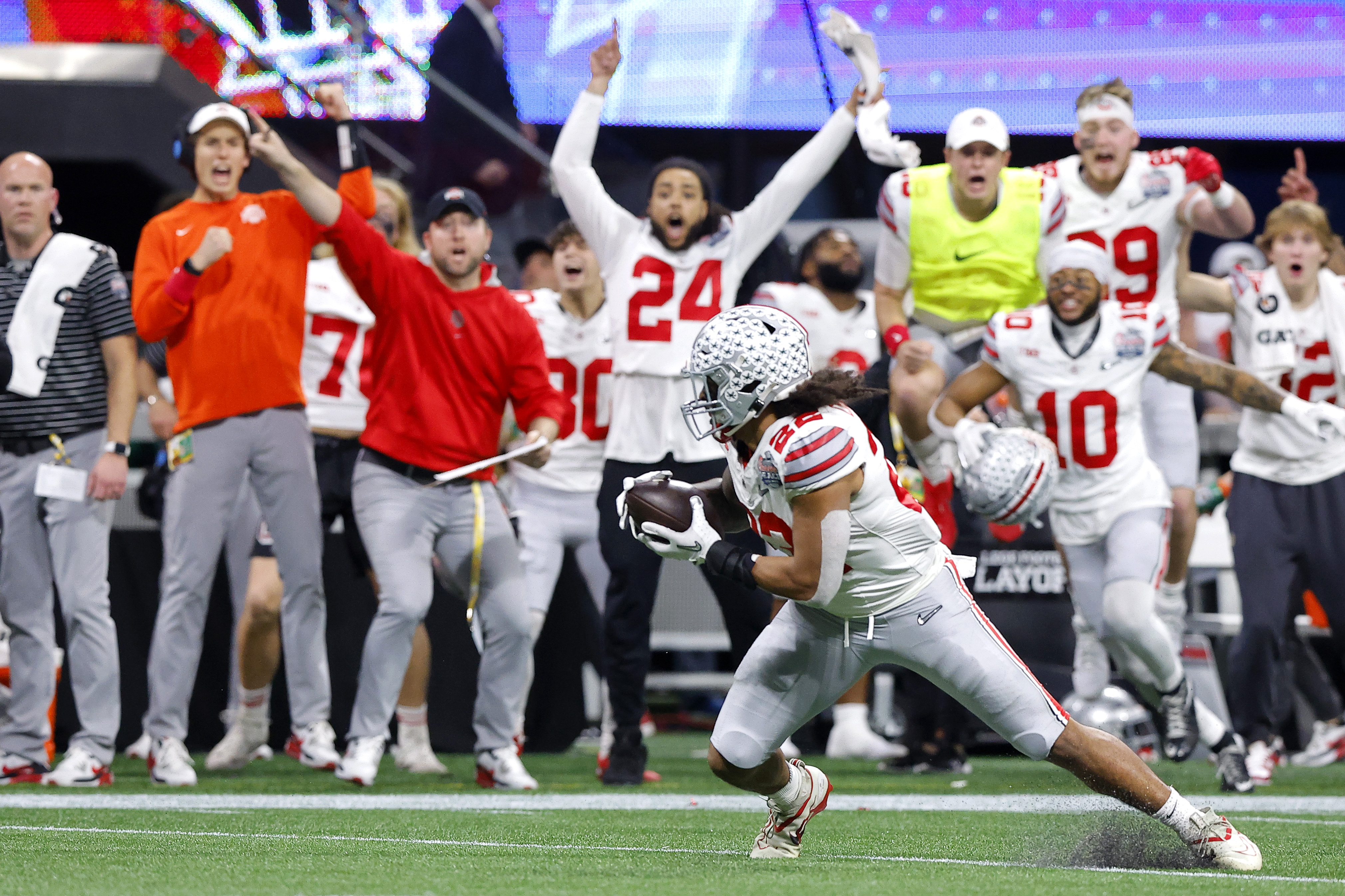 Receiving: OSU’s Marvin Harrison Jr. (5 catches, 106 yds, 2 TD) – UGA’s Marcus Rosemy-Jacksaint (2 catches, 34 yards)
