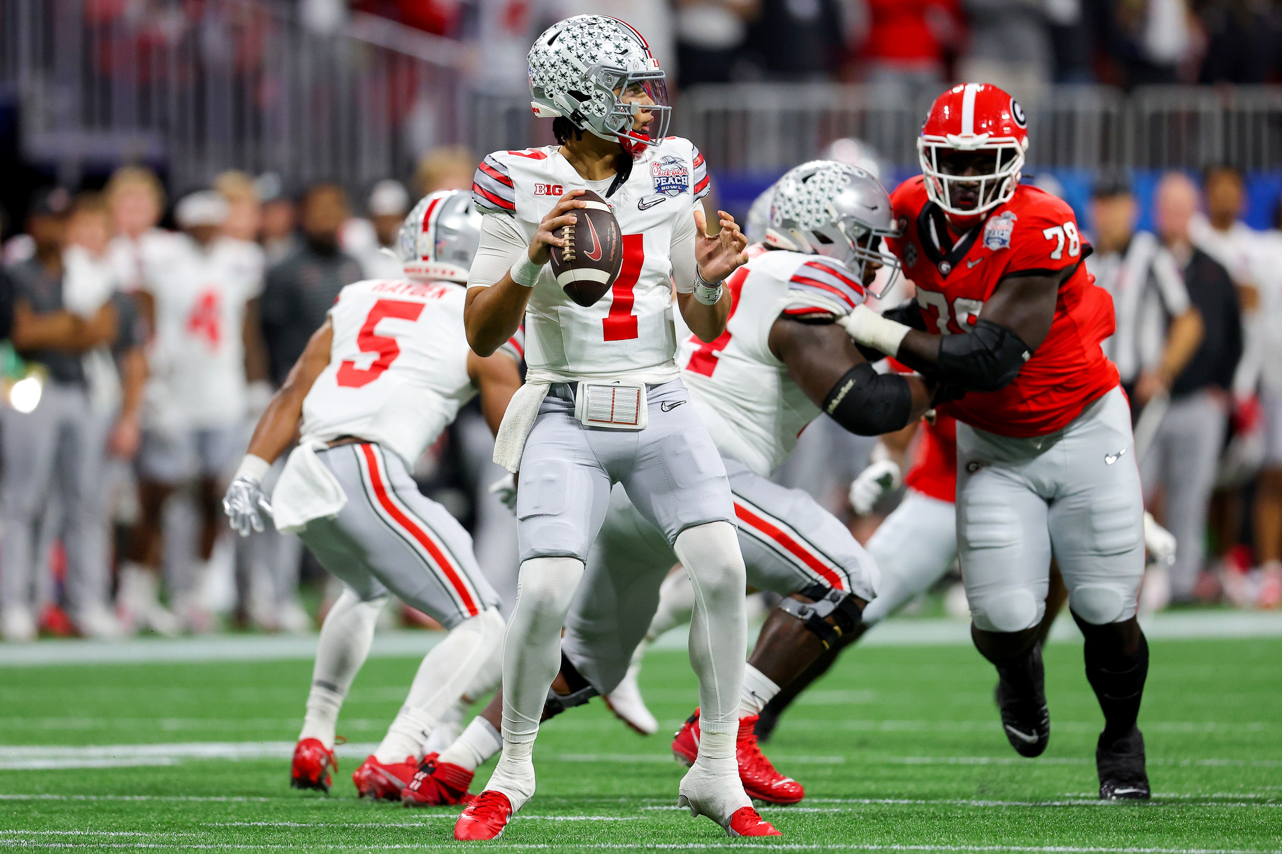 Passing: OSU’s C.J. Stroud (15-19, 238 yds, 3 TD) – UGA’s Stetson Bennett (12-19, 191 yds, TD, INT)