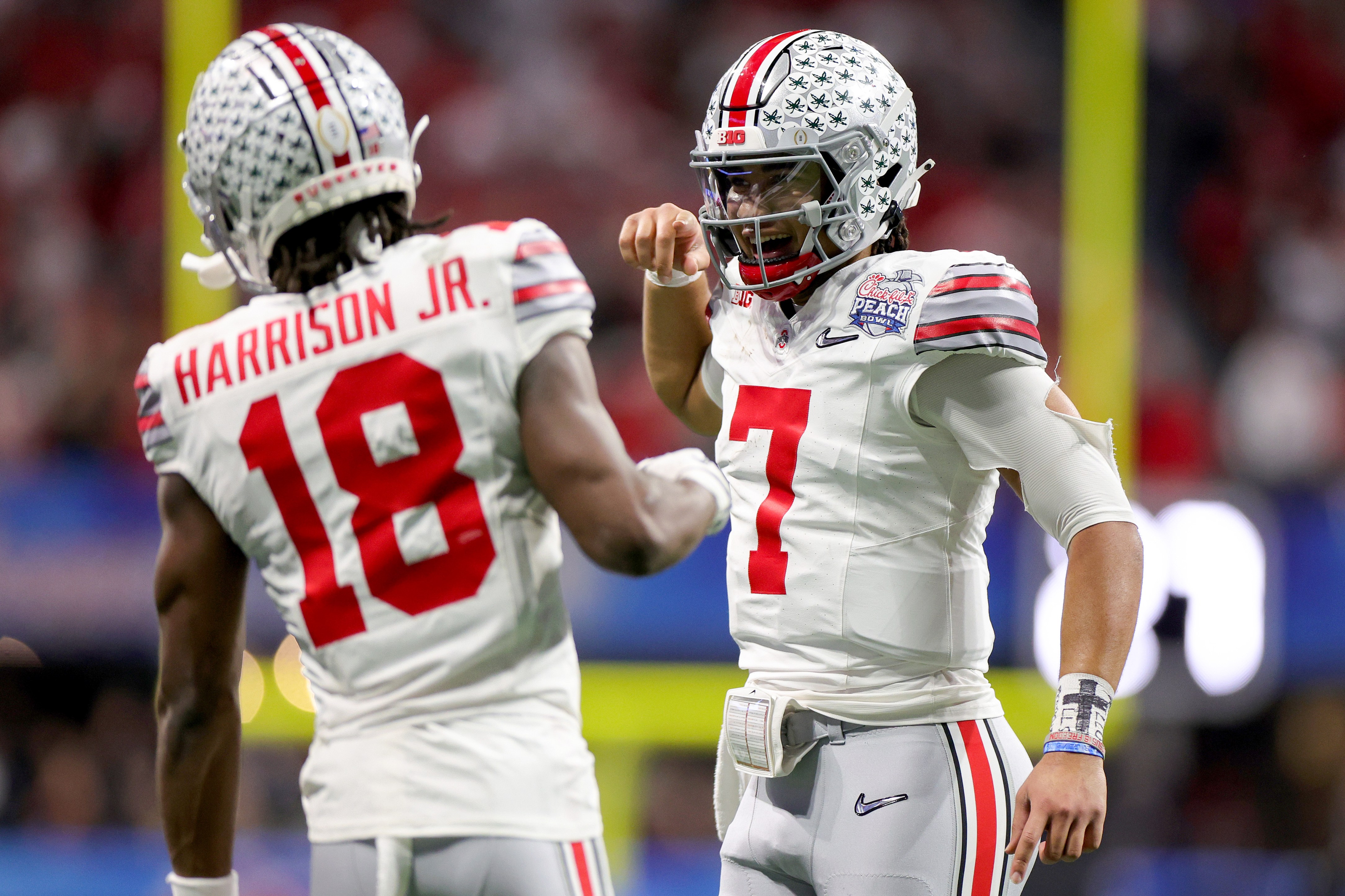 Ohio State padded its lead after the INT with a third touchdown. Stroud faced pressure and danced around three Georgia defenders to avoid a sack and found Harrison Jr. in the corner of the end zone for his second TD. The extra point made it 21-7 OSU with both Stroud and Harrison Jr. eclipsing 100 yards.