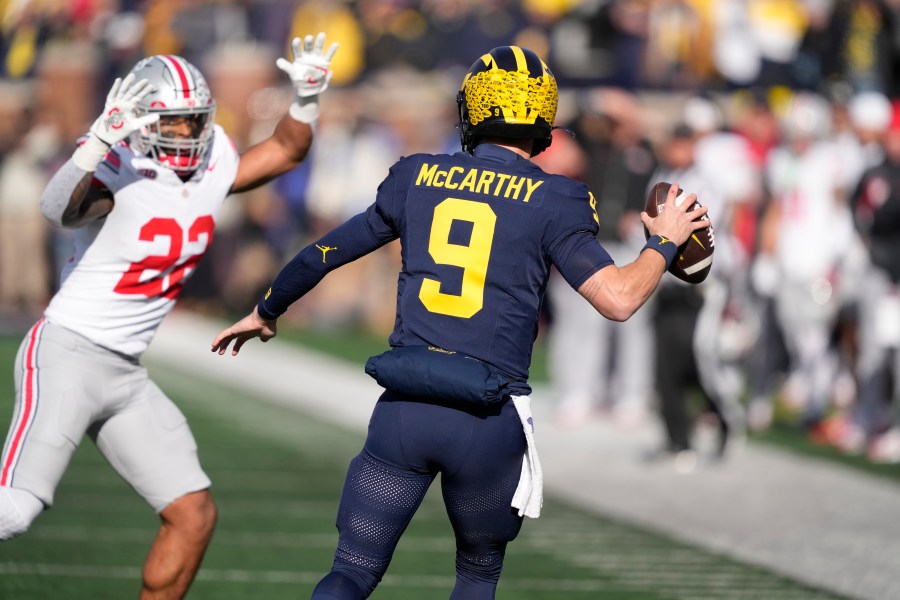 - Michigan TD extends lead after long drive: The Wolverines extended its lead after a masterful 14-play, 75-yard drive that included two 4th down conversions. McCarthy found Roman Wilson from 22 yards out for a touchdown on 3rd and 10. Michigan 14, Ohio State 3