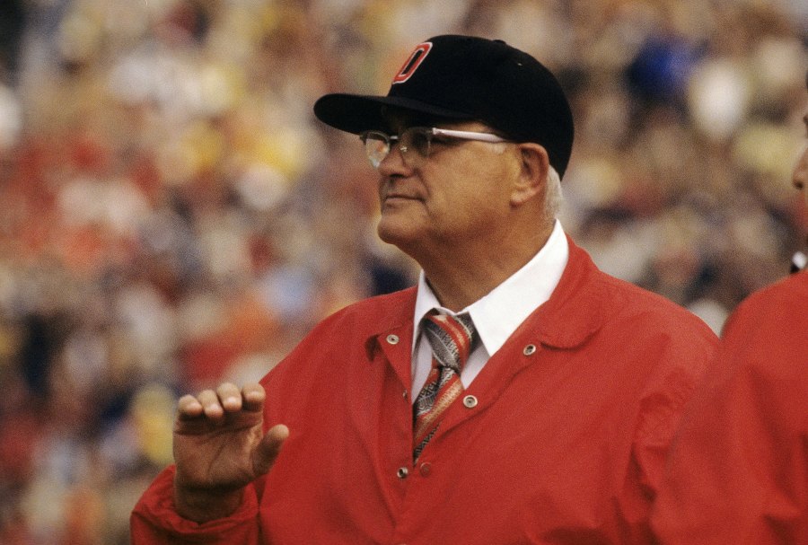 CIRCA 1970’s: Head Coach Woody Hayes of the Ohio State Buckeyes on the sidelines during a NCAA football game mid circa 1970’s. Hayes coached the Ohio State Buckeyes from 1951-78. (Photo by Focus on Sport/Getty Images)