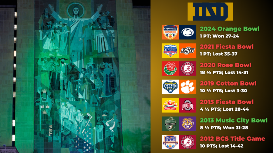 Since 2000, Notre Dame has been an eight-point or higher underdog in five postseason games and lost each time. But the Irish covered the spread in their two previous meetings with Ohio State, in 2022 and 2023.