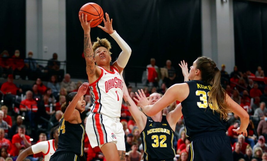 Ohio State was down by as many as eight points in the first quarter. The Buckeyes fought back thanks to similarly cold shooting from the Wolverines. Emma Shumate hit a 3-pointer from the corner before the buzzer to give the Buckeyes a 30-27 lead at the intermission.