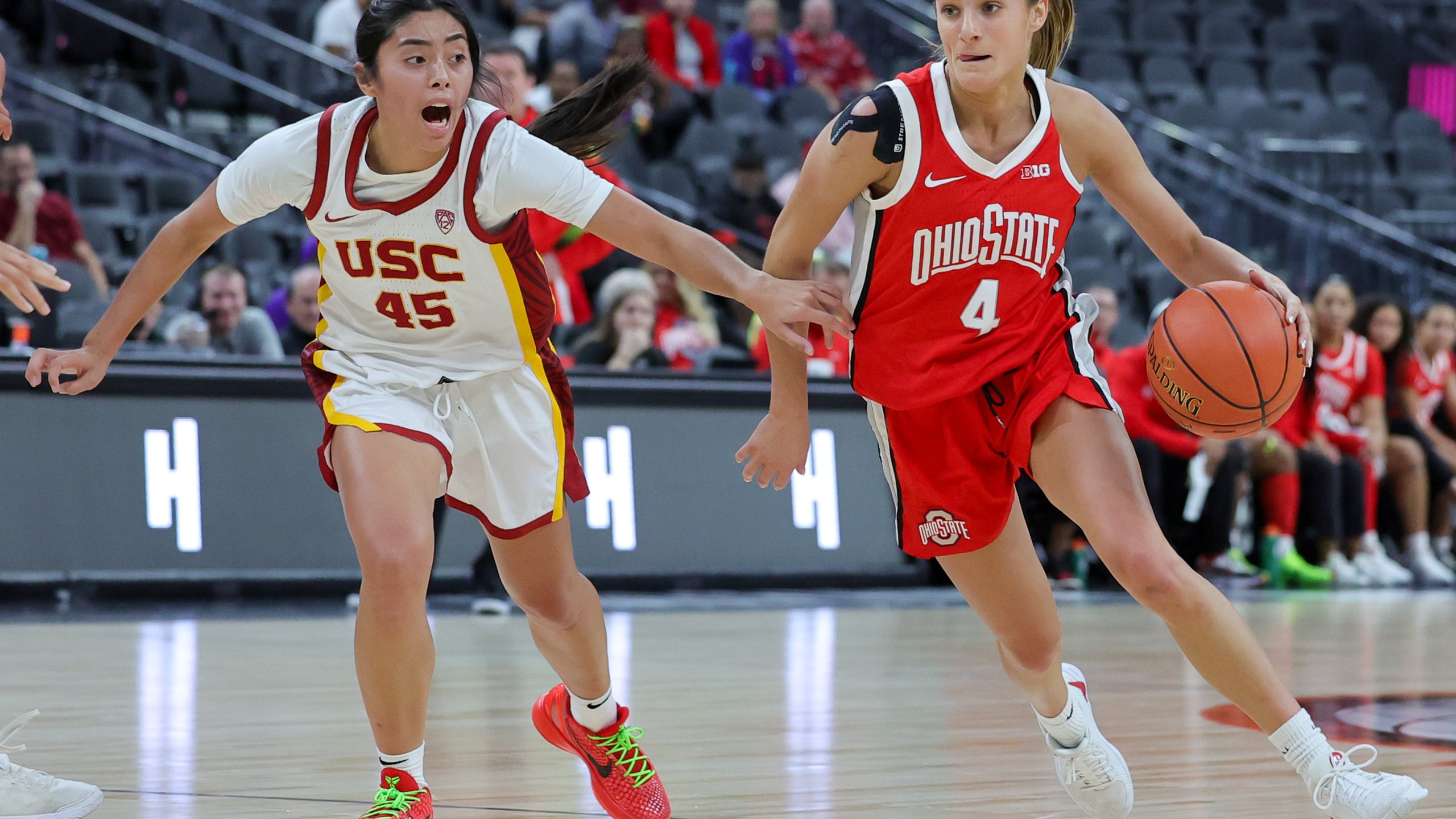 USC was led by first-year guard JuJu Watkins, the No. 1 rated recruit in the 2023 class. She impressed in her collegiate debut and took over the game when on the floor with 32 points, and five assists while shooting 90% from the free throw line. The Trojans also dominated on the glass, outrebounding the Buckeyes 43-28.
