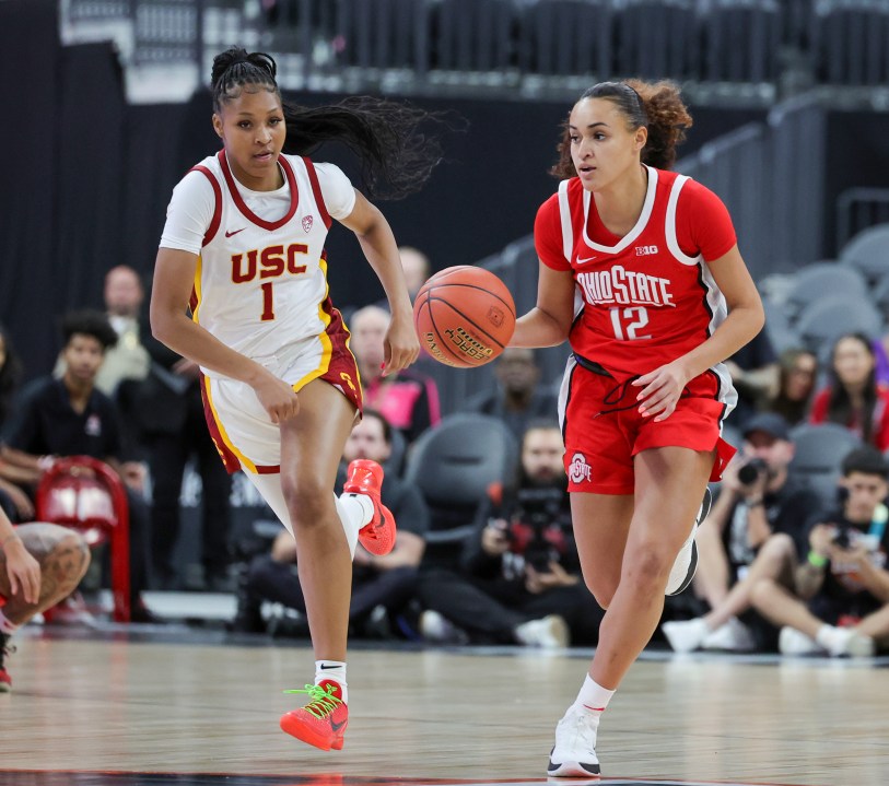 USC rolled through the second quarter with an emphatic 31-10 run. Watkins scored 16 points and was perfect from the free throw line in her first half as a Trojan. The Buckeyes erased that huge deficit in the third quarter and were up by two heading into the fourth, anchored by Sheldon’s 12 third-quarter points and 10 from Thierry.