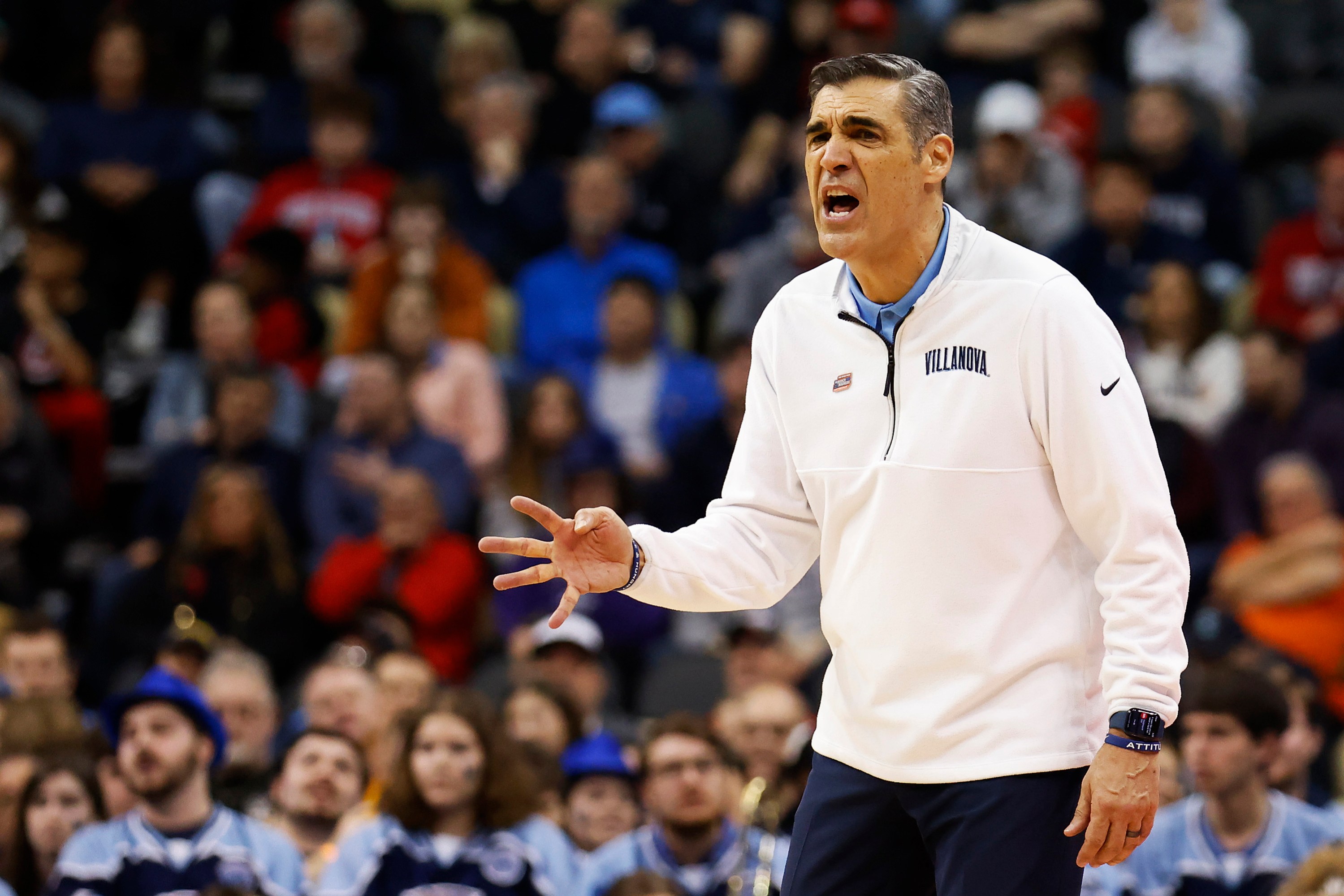 PITTSBURGH, PENNSYLVANIA – MARCH 20: Head coach Jay Wright of the Villanova Wildcats reacts in the first half of the game against the Ohio State Buckeyes during the second round of the 2022 NCAA Men’s Basketball Tournament at PPG PAINTS Arena on March 20, 2022 in Pittsburgh, Pennsylvania. (Photo by Kirk Irwin/Getty Images)