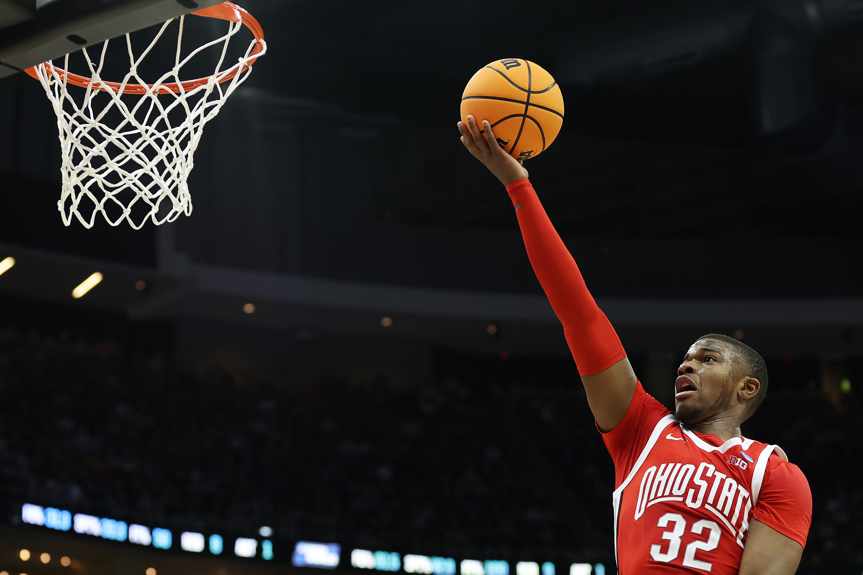 PITTSBURGH, PENNSYLVANIA – MARCH 20: E.J. Liddell #32 of the Ohio State Buckeyes jumps to shoot the ball in the first half of the game against the Villanova Wildcats during the second round of the 2022 NCAA Men’s Basketball Tournament at PPG PAINTS Arena on March 20, 2022 in Pittsburgh, Pennsylvania. (Photo by Rob Carr/Getty Images)