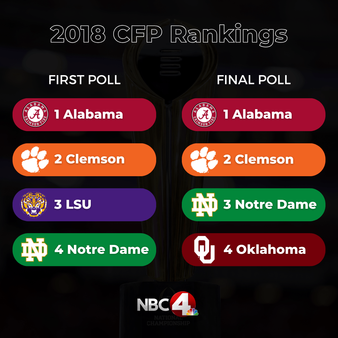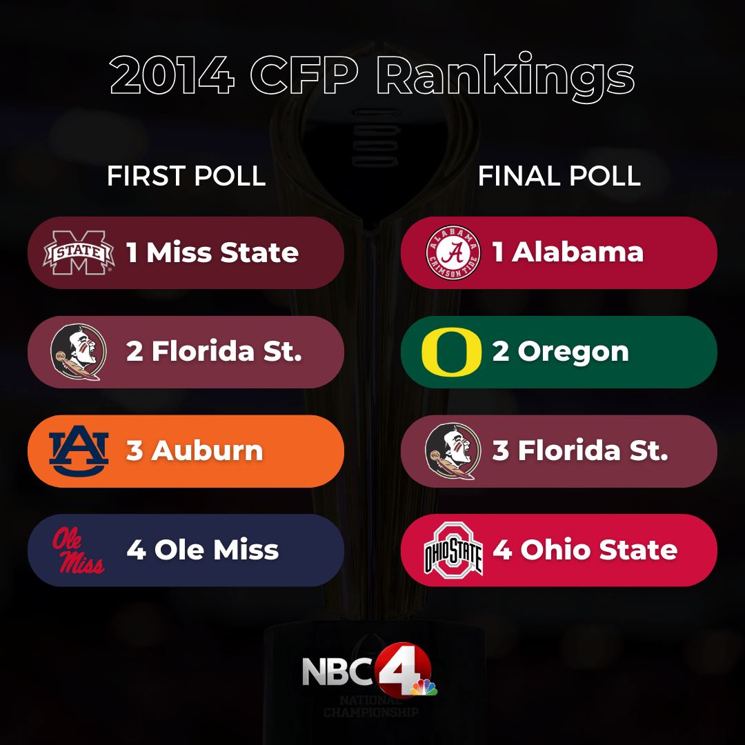 Nearly 60% of teams that are in the top four in the first CFP rankings end up in the playoff semifinals. The first team to get that coveted top ranking has made the playoffs on all but two occasions (2022 Tennessee and 2014 Mississippi State).