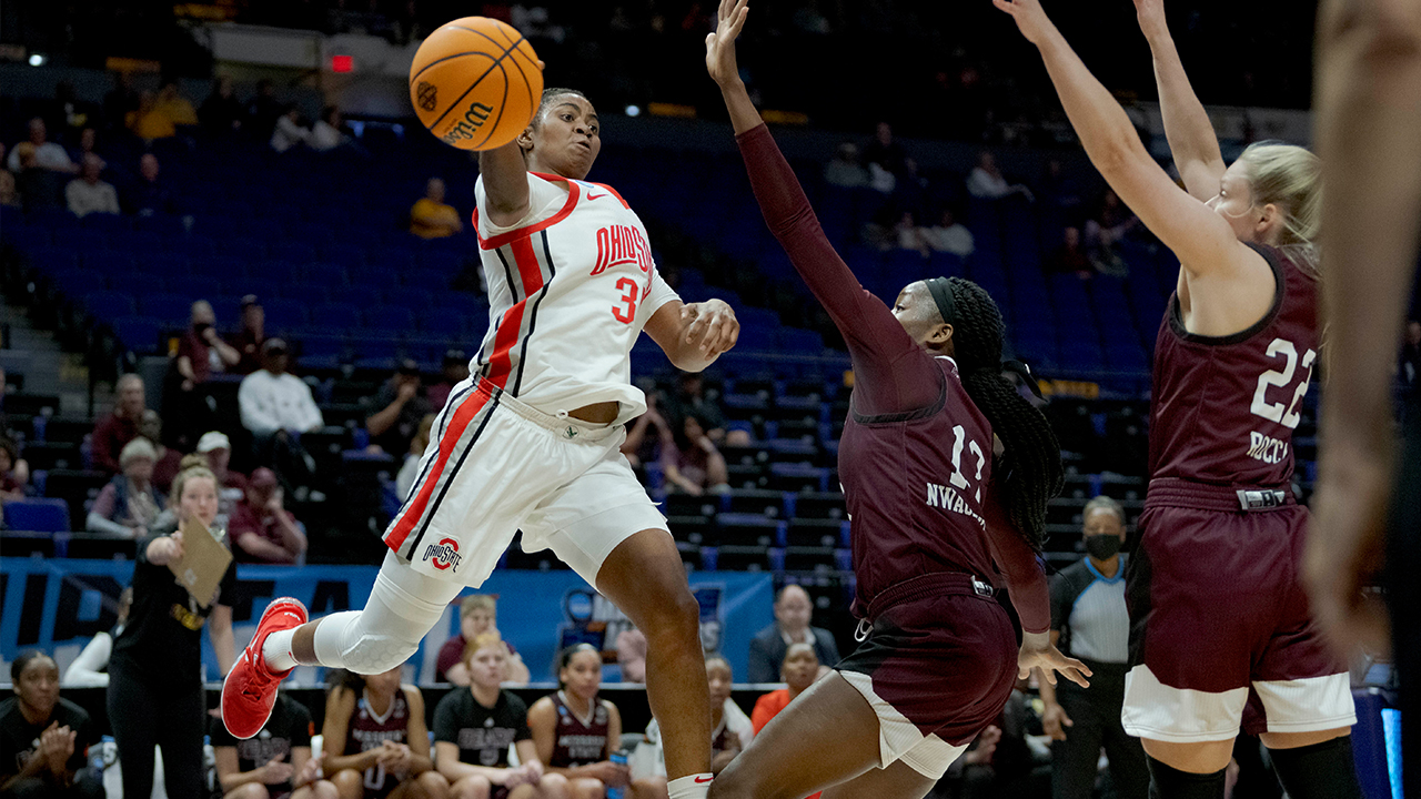 BATON ROUGE, Louisiana (WCMH) — No. 6 Ohio State held off No. 11 Missouri State 63-56 in the first round of the women’s NCAA Tournament on Saturday.