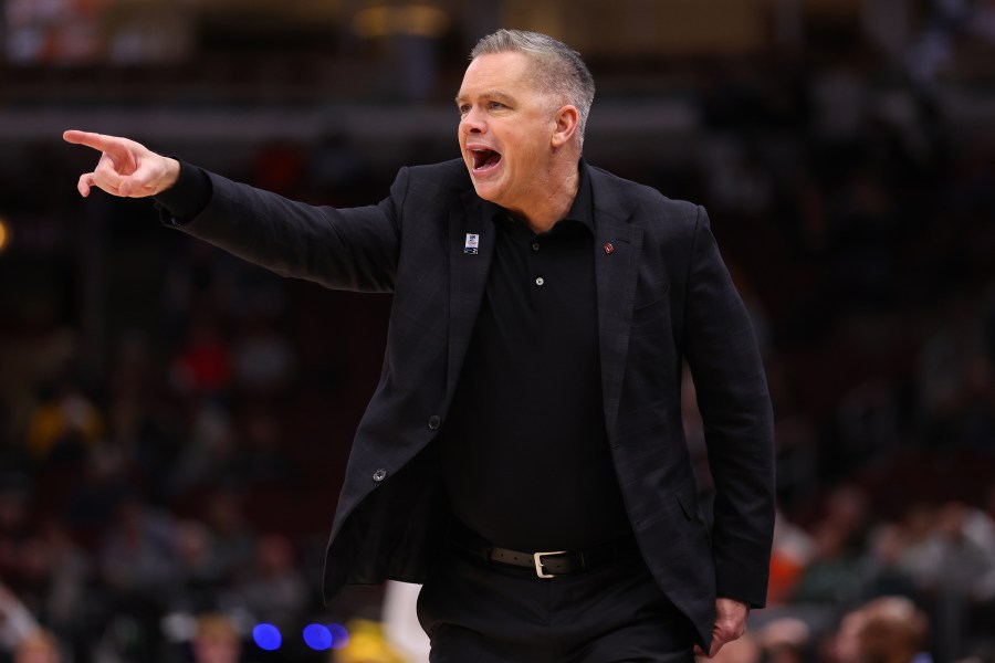 CHICAGO, ILLINOIS - MARCH 09: Head coach Chris Holtmann of the Ohio State Buckeyes reacts against the Iowa Hawkeyes in the first half of the second round in the Big Ten Tournament at United Center on March 09, 2023 in Chicago, Illinois. (Photo by Michael Reaves/Getty Images)