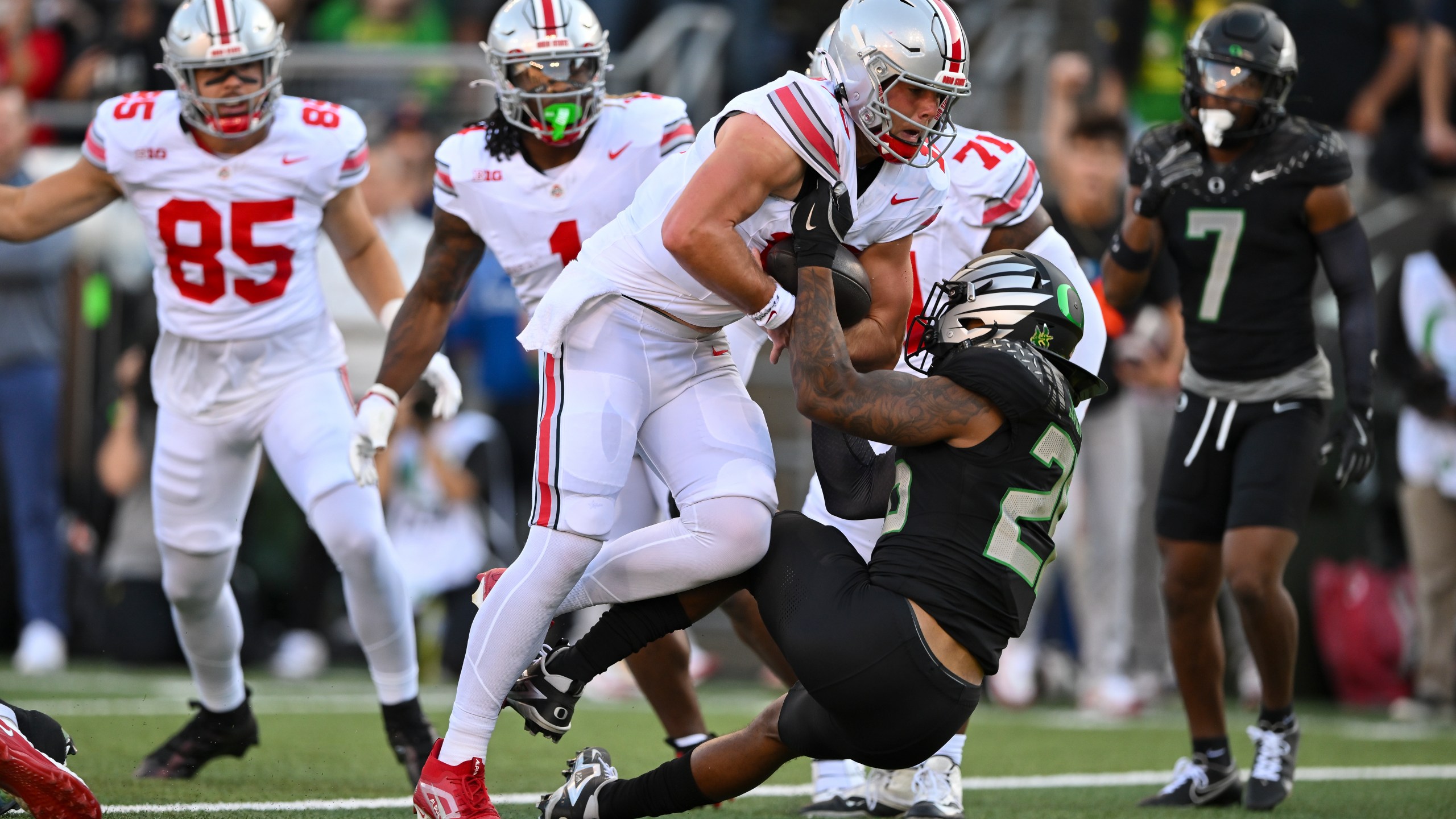 The most memorable moments came in the final seconds as the Buckeyes drove down near the red zone as they trailed by one. An offensive pass interference call on OSU receiver Jeremiah Smith moved them backwards and out of field goal range as the game ended with Howard sliding in the middle of the field and not calling a timeout, giving Oregon the signature win.
