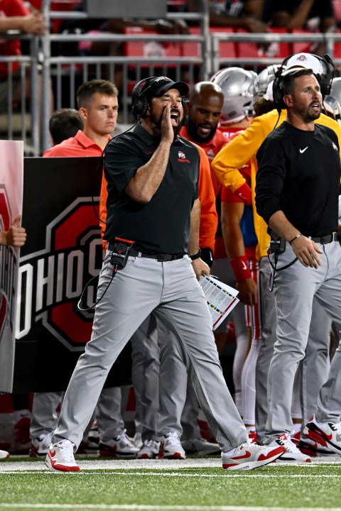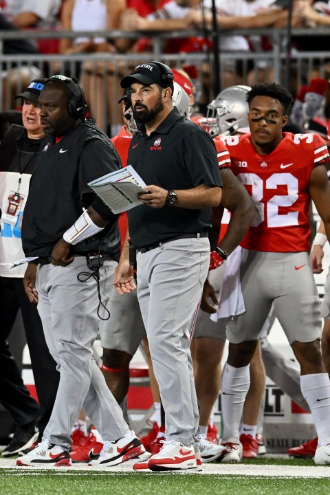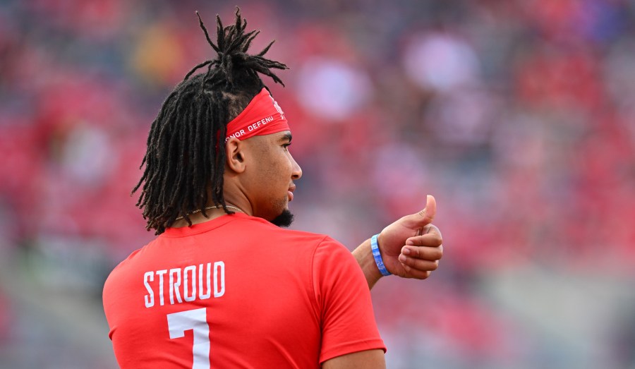 Stroud opened the drive with a 29-yard strike to Egbuka, who went over 100 yards for the game, and two plays later found Egbuka open in the end zone for a seven yard scoring strike. The sophomore has seven grabs for 116 yards and a touchdown, as well as a rushing score. Stroud’s night is over, and what a superlative night it was — 22-of-27 for 367 yards and five touchdowns.