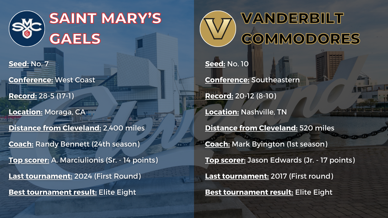 3:15 p.m. (Cleveland) – Saint Mary’s vs. Vanderbilt