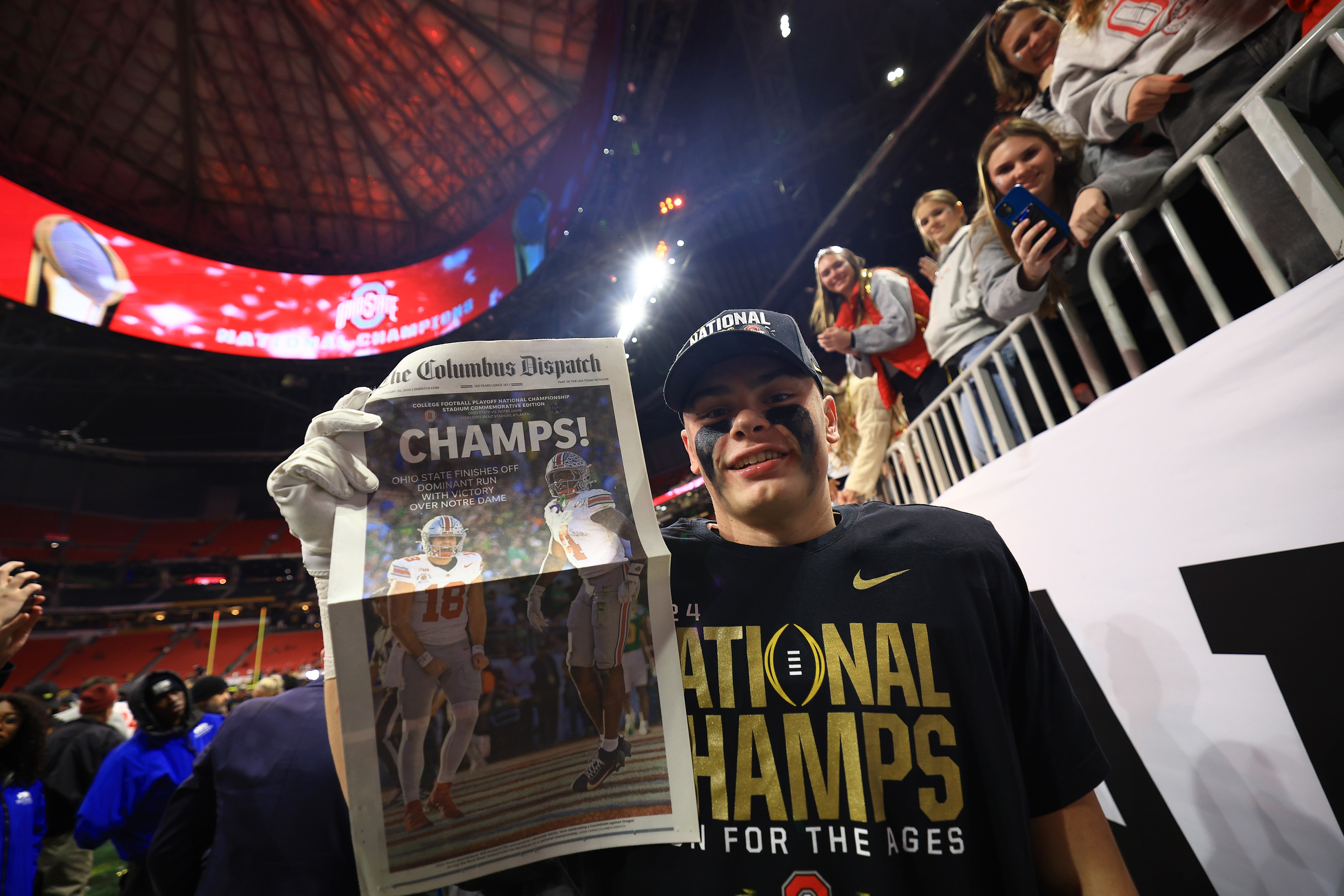The final chapter wasn’t easy. Despite grabbing a 31-7 lead in the second half, the Buckeyes were challenged until deep in the fourth quarter by Notre Dame. But a timely catch by a familiar star cemented the 34-23 victory at Mercedes-Benz Stadium in Atlanta, capping off the longest season in the history of the sport.