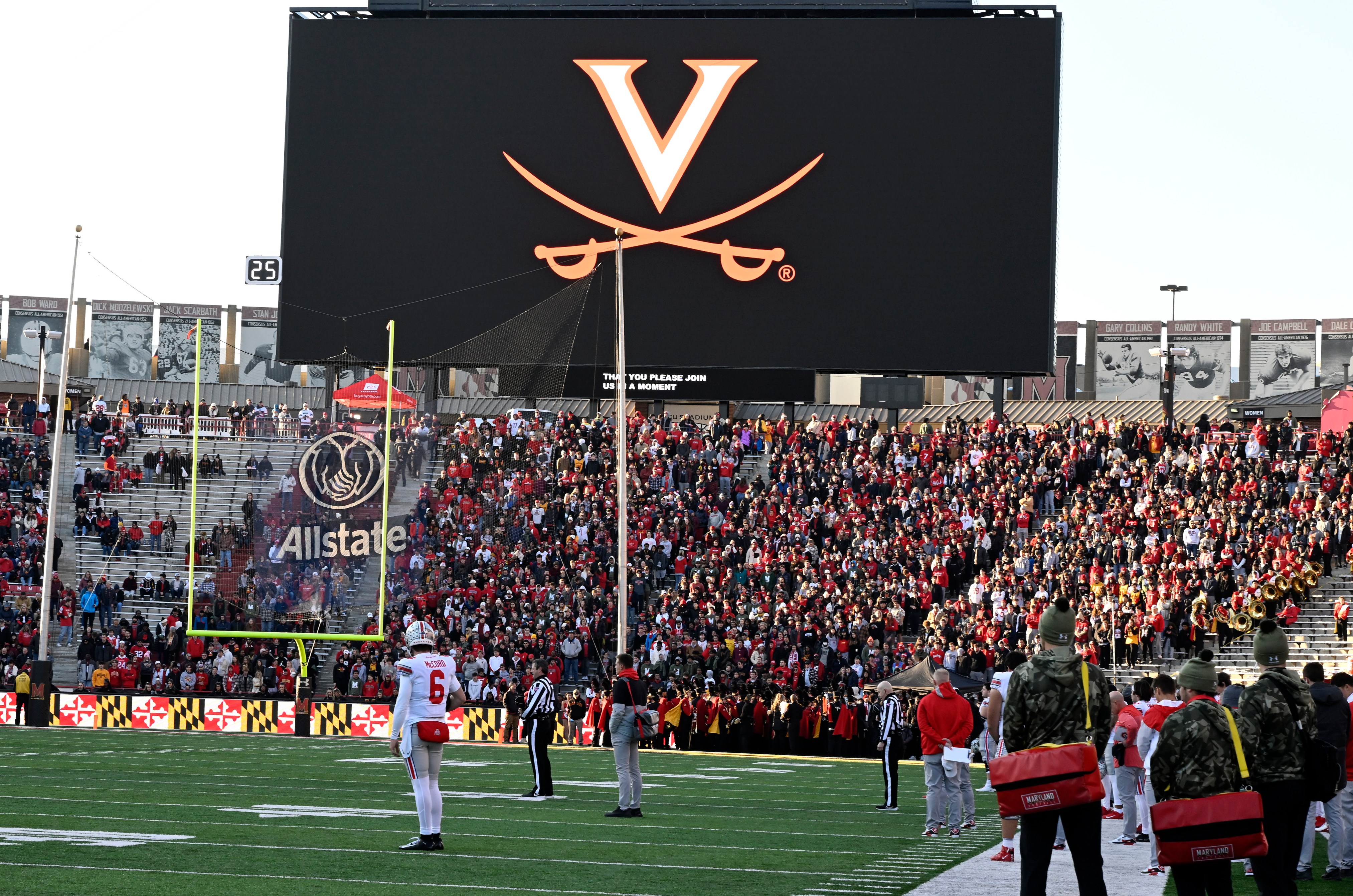 COLLEGE PARK, MARYLAND – NOVEMBER 19: A moment of silence is held to remember the shooting victims from the University of Virginia before the game between the Maryland Terrapins and the Ohio State Buckeyes at SECU Stadium on November 19, 2022 in College Park, Maryland. (Photo by Greg Fiume/Getty Images)