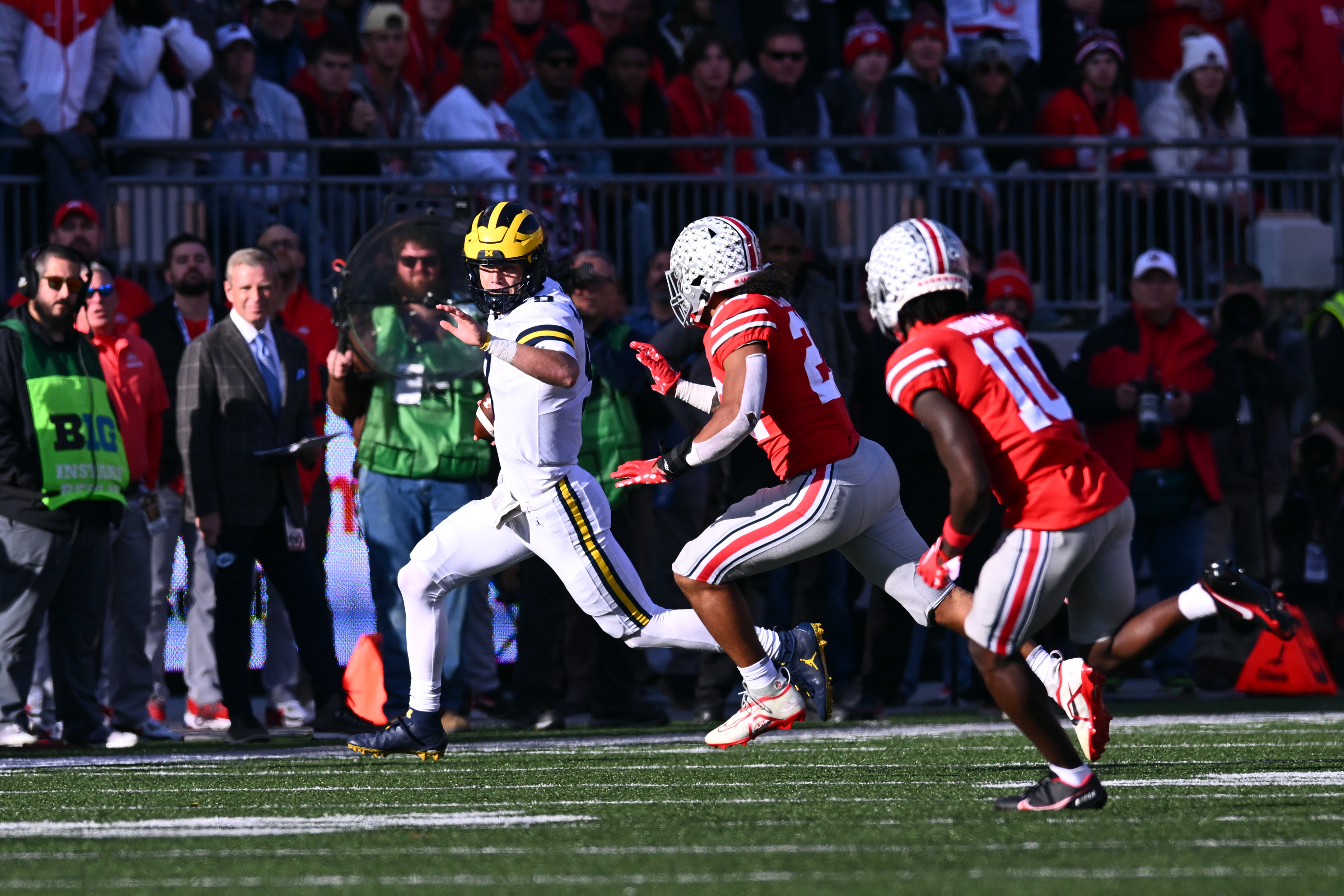 Michigan quarterback J.J. McCarthy completed just 50 percent of his passes, but many were for big gains or drew pass interference penalties that kept drives going. It was a poor effort all around from the secondary, from coverage to tackling, and it cost the Buckeyes dearly.