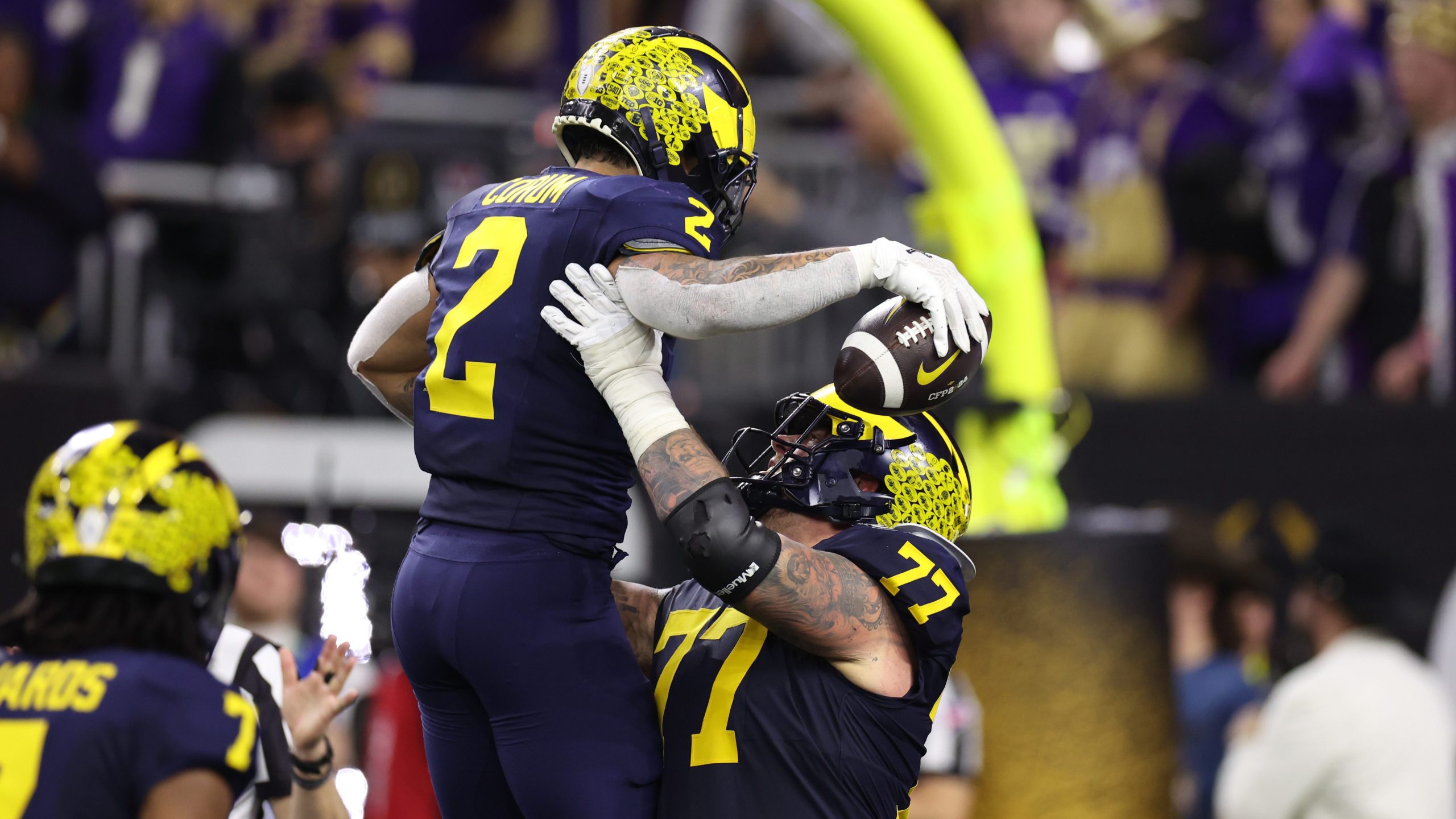 HOUSTON (AP) — Blake Corum ran for 134 yards and two fourth-quarter touchdowns as Jim Harbaugh and No. 1 Michigan — undeterred by suspensions and a sign-stealing case that shadowed the program — completed a three-year climb to a national championship by beating No. 2 Washington 34-13 Monday night in the College Football Playoff title game.