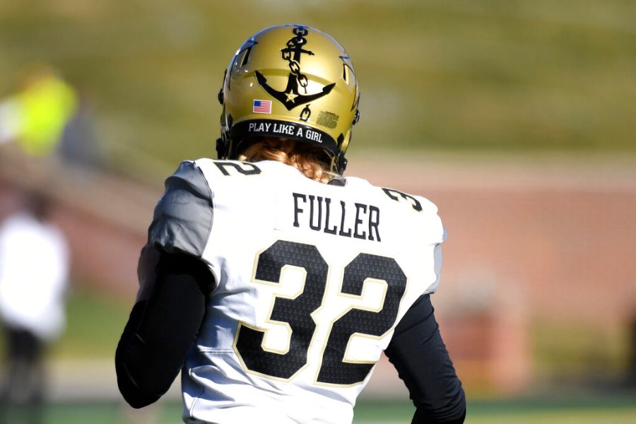 Fuller agreed to give football a try and practiced with the winless Commodores before making the trip to Missouri. She wore “Play Like A Girl” on the back of her helmet. She wore No. 32 on Saturday, the same as her number when playing soccer.