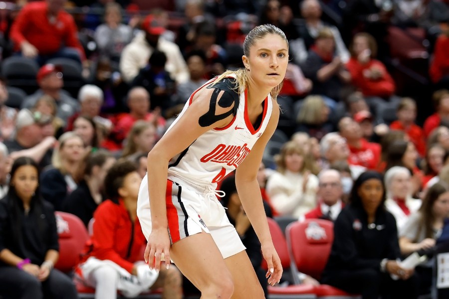 FILE PHOTO: COLUMBUS, OHIO - DECEMBER 22: Jacy Sheldon #4 of the Ohio State Buckeyes stands on the court during the game against the Belmont Bruins at Value City Arena on December 22, 2023 in Columbus, Ohio. Ohio State defeated Belmont 84-55. (Photo by Kirk Irwin/Getty Images)