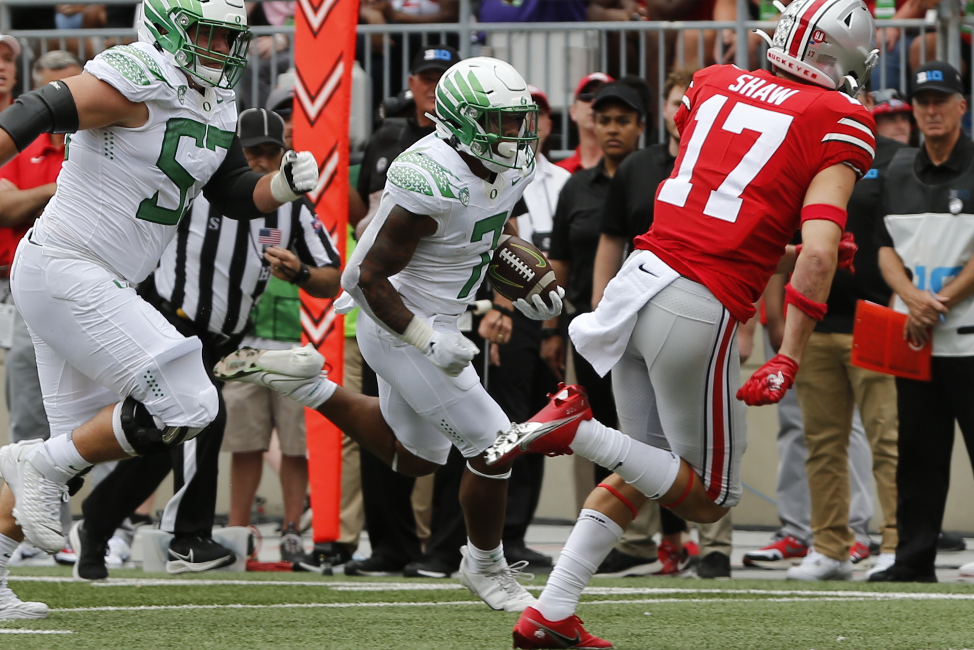 Ohio State allowed more than 250 yards rushing, more than seven yards per carry and 236 yards passing. C.J. Stroud threw for nearly 500 yards and three touchdowns but it wasn’t enough as the defense struggled throughout the game, especially when Oregon ran the ball to the boundary.