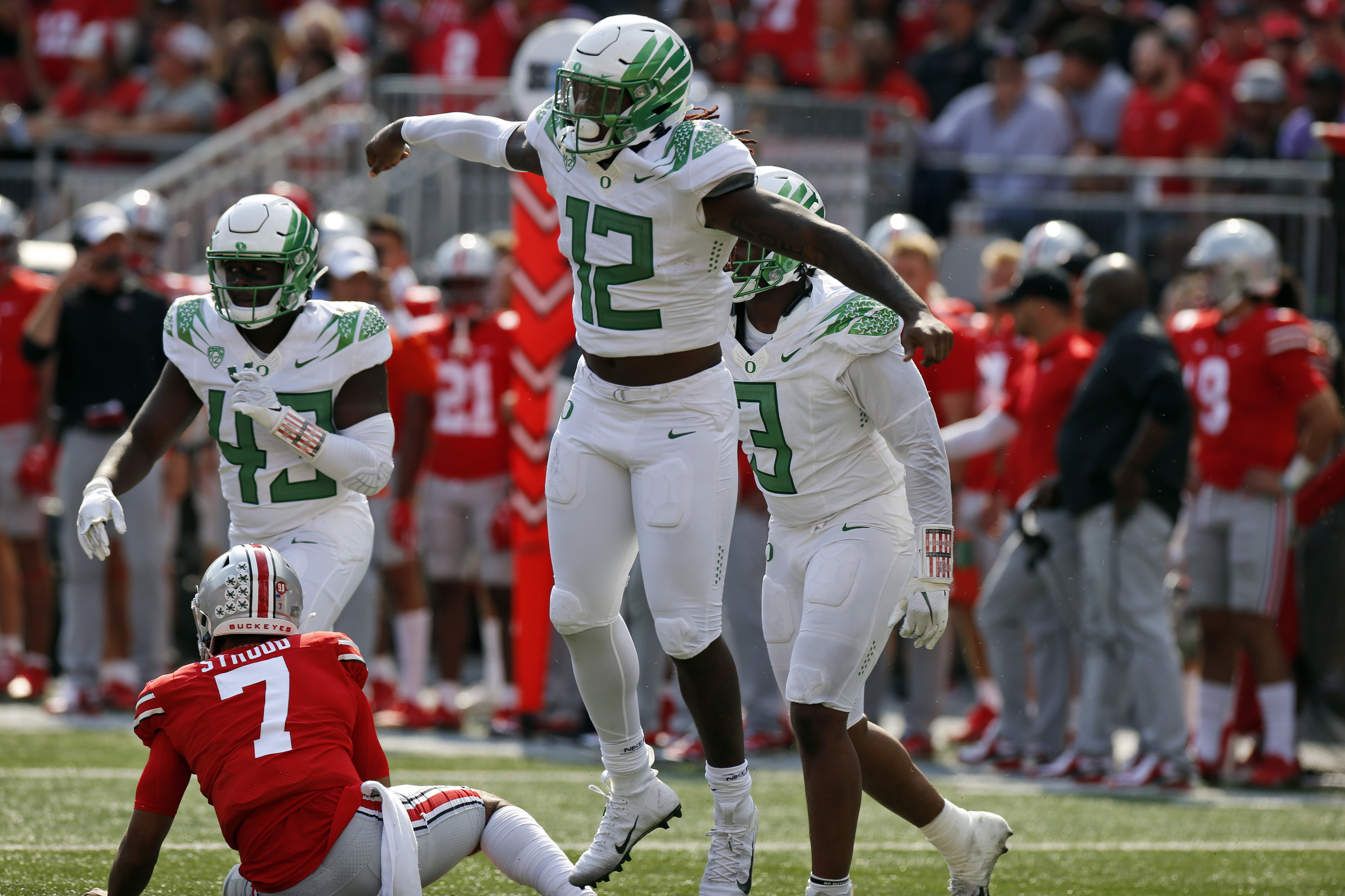 Oregon played without its two best defenders in Kayvon Thibodeaux and linebacker Justin Flowe while OSU lost free safety Josh Proctor to injury in the third quarter.