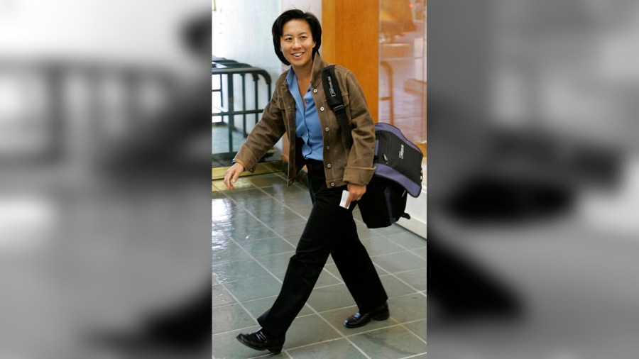 FILE - In this Nov. 5, 2007 file photo, Los Angeles Dodgers assistant general manager Kim Ng walks through the hotel lobby during the first day of Major League Baseball annual general managers meetings in Orlando, Fla. Ng has become the highest-ranking woman in baseball operations in the major leagues. She was hired Friday, Nov. 13, 2020, as general manager of the Miami Marlins. (AP Photo/John Raoux, file)