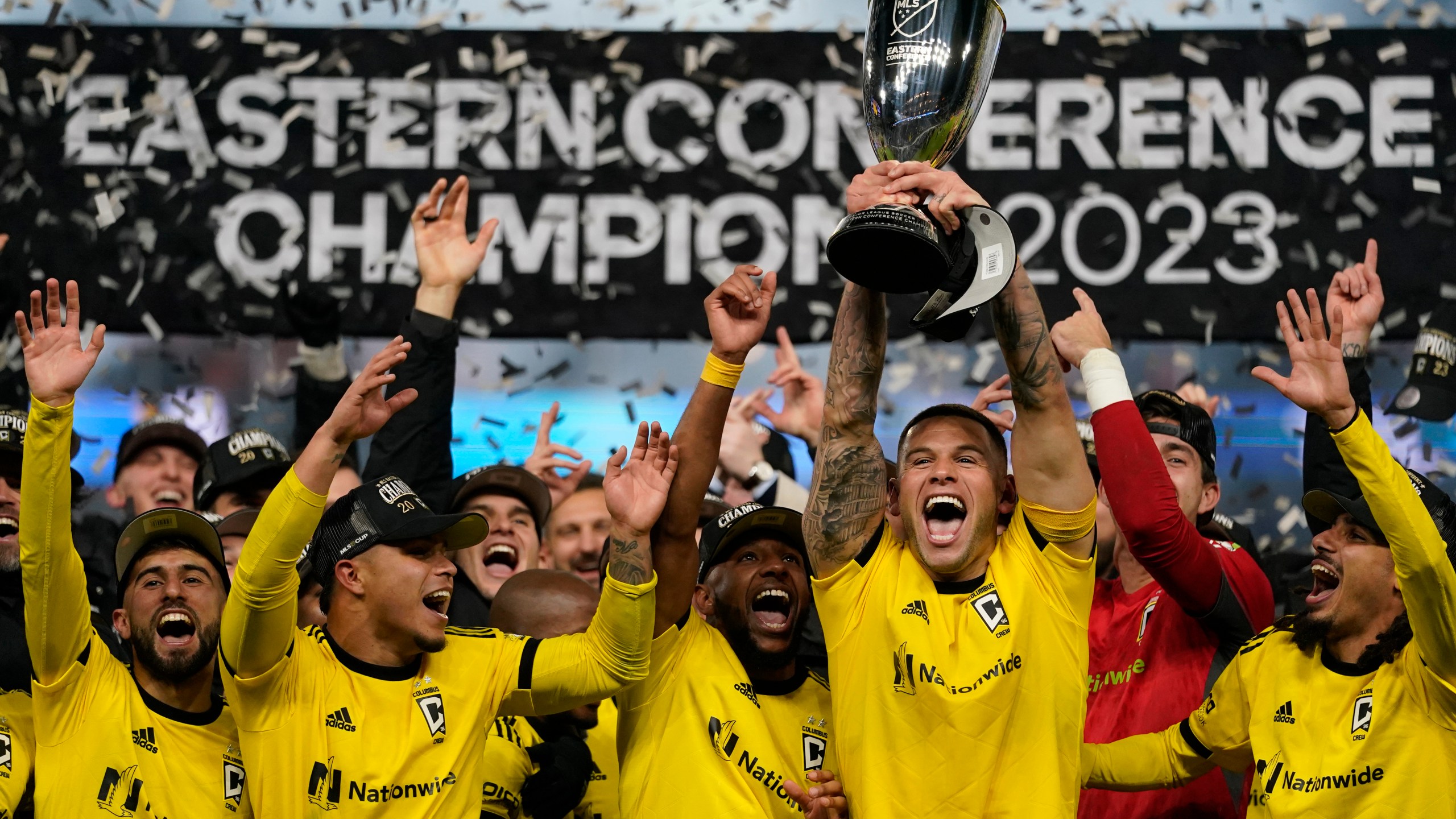 CINCINNATI (WCMH) — The Columbus Crew won its fourth Eastern Conference title after a dramatic comeback victory over rivals FC Cincinnati in extra time 3-2, clinching home-field for the 2023 MLS Cup final.