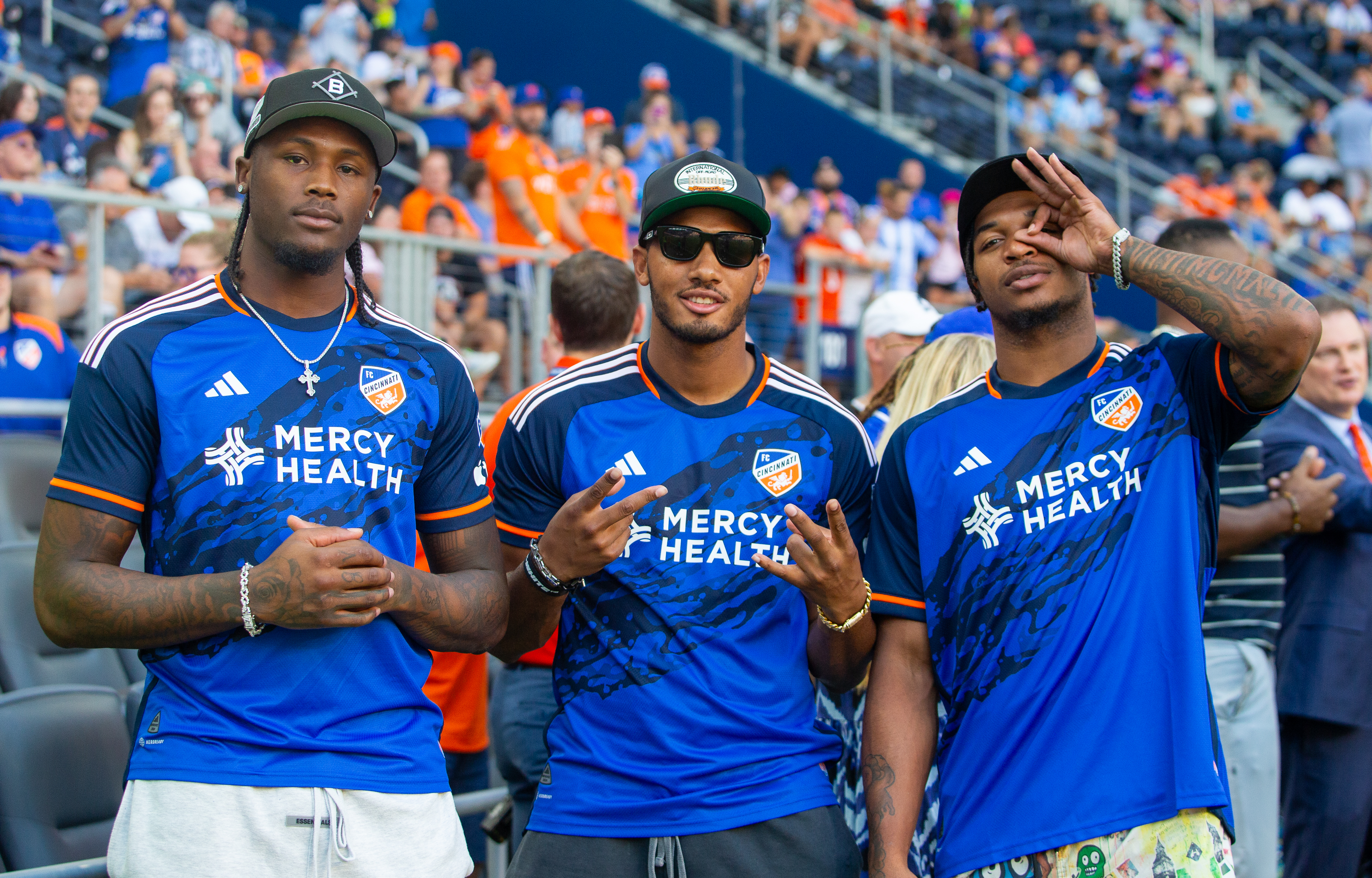 CINCINNATI, OH – AUGUST 23: A few members of the Cincinnati Bengals show their support for Cincinnati FC before a game between Inter Miami CF and FC Cincinnati at TQL Stadium on August 23, 2023 in Cincinnati, Ohio. (Photo by Michael Miller/ISI Photos/Getty Images)