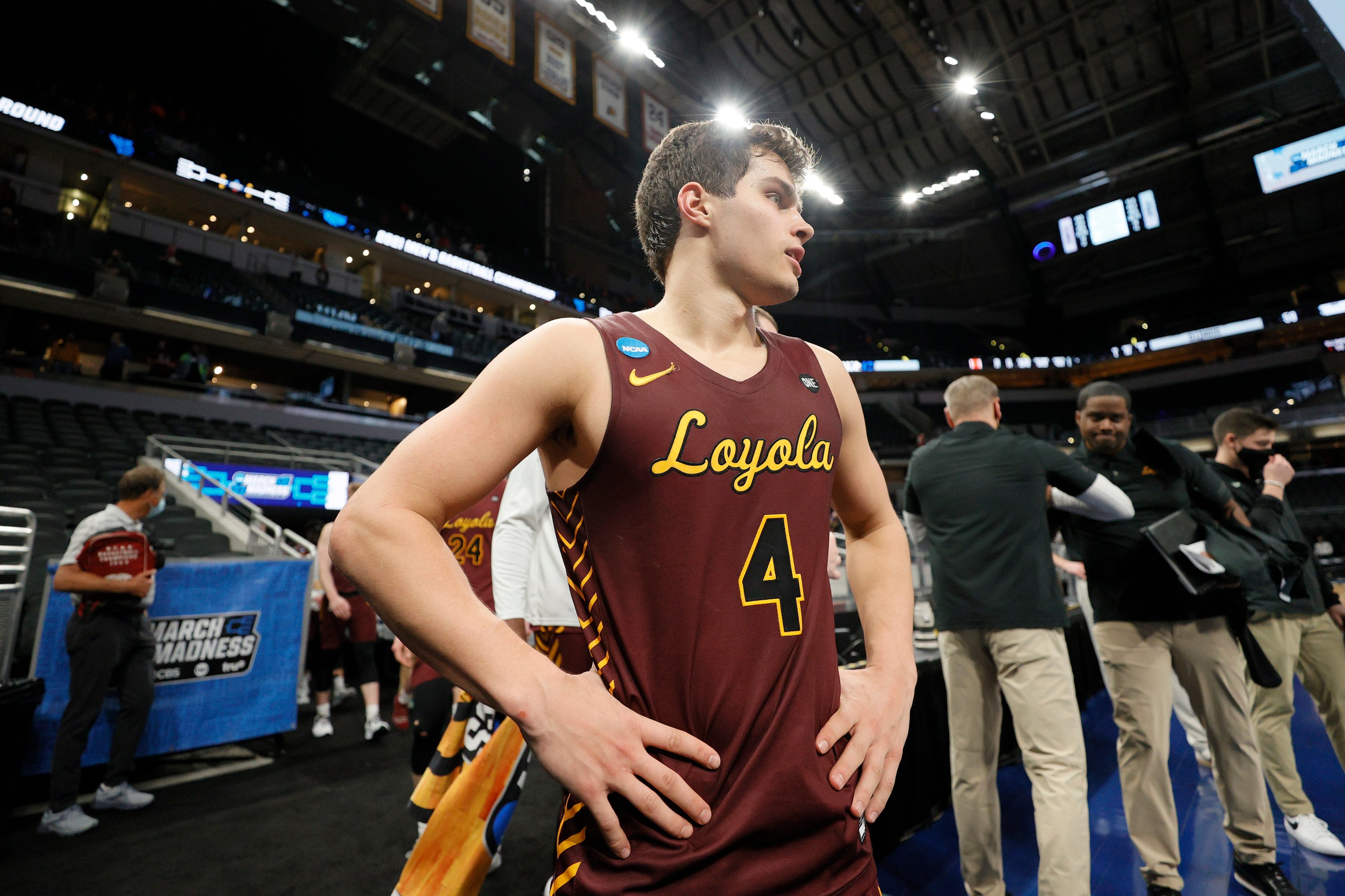 INDIANAPOLIS, INDIANA – MARCH 21: Braden Norris #4 of the Loyola Chicago Ramblers looks on after defeating the Illinois Fighting Illini in the second round game of the 2021 NCAA Men’s Basketball Tournament at Bankers Life Fieldhouse on March 21, 2021 in Indianapolis, Indiana. (Photo by Sarah Stier/Getty Images)