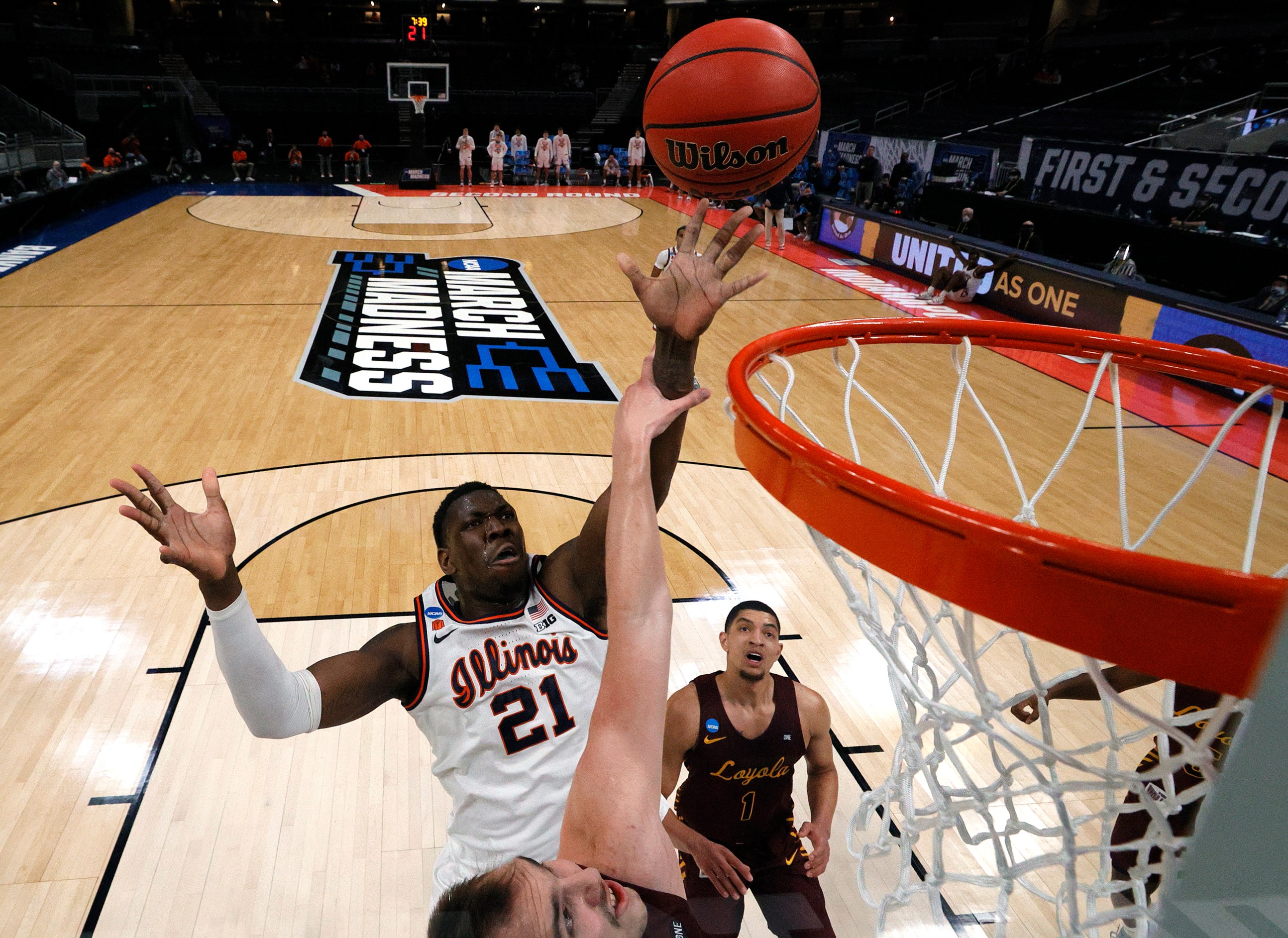 INDIANAPOLIS, INDIANA – MARCH 21: Kofi Cockburn #21 of the Illinois Fighting Illini shoots the ball against the Loyola Chicago Ramblers in the second round game of the 2021 NCAA Men’s Basketball Tournament at Bankers Life Fieldhouse on March 21, 2021 in Indianapolis, Indiana. (Photo by Sarah Stier/Getty Images)