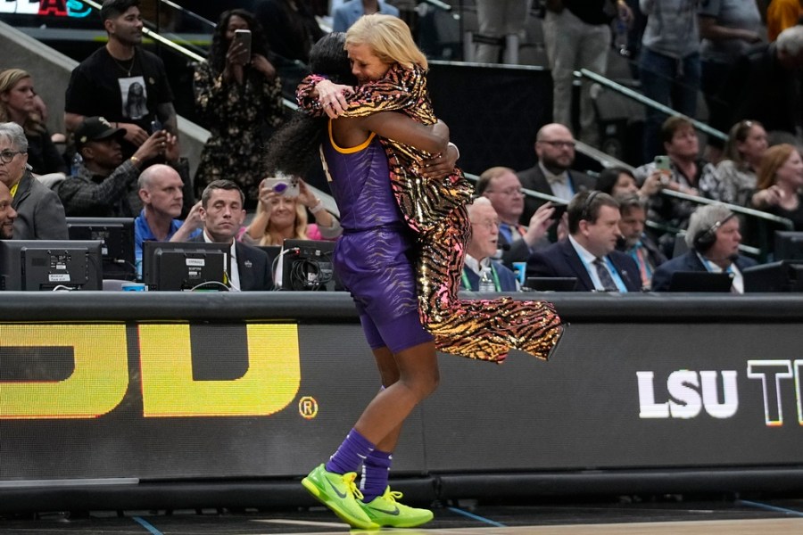 DALLAS (AP) — Kim Mulkey’s LSU Tigers used a record offensive performance to beat Caitlin Clark and Iowa 102-85 in the national championship game on Sunday to win the first basketball title in school history.