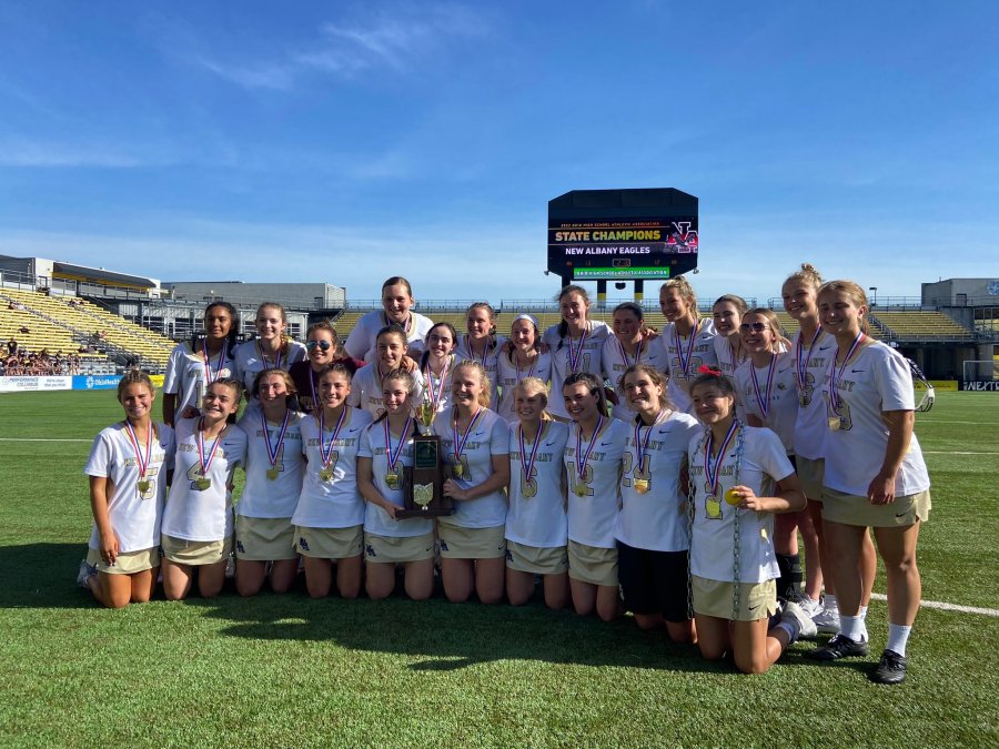 New Albany trailed 12-9 with just over three minutes left in the game but the Eagles sored three unanswered goals to force overtime where Maddy Paz made the game-winning penalty shot. It was New Albany’s first state title after finishing as state runner ups three years in a row.