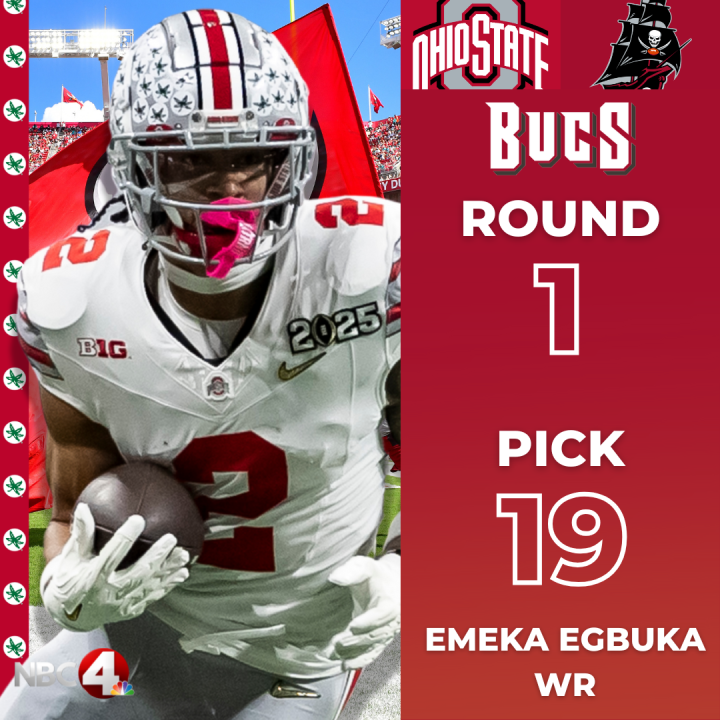 Ohio State has 15 players from its national championship winning team in the draft pool and four were selected in the first round. It started with receiver Emeka Egbuka, who was taken 19th overall by the Tampa Bay Buccaneers. Egbuka’s selection marks four straight NFL drafts an Ohio State receiver was a first round selection.