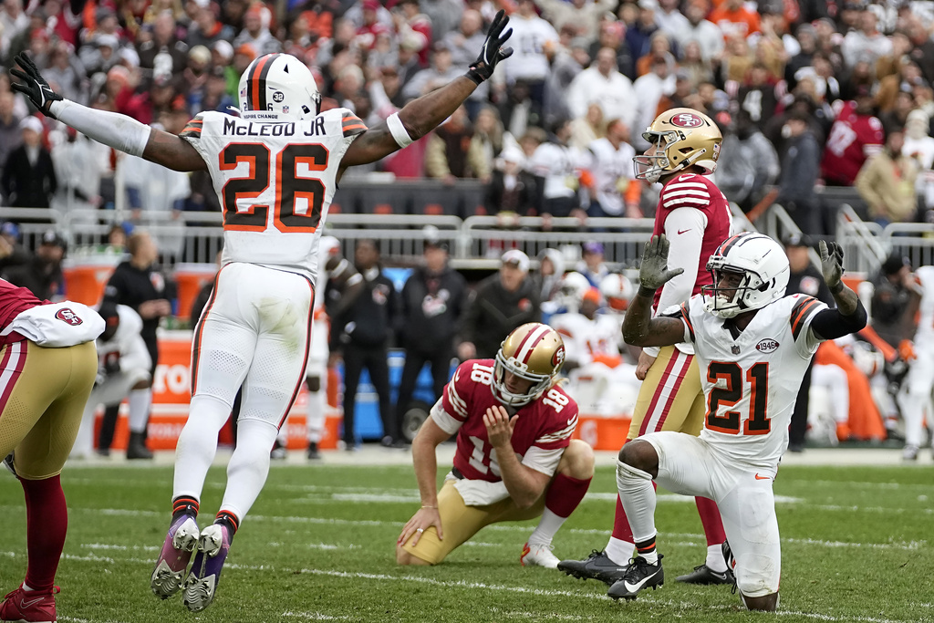 The 49ers came in looking nearly unbeatable after destroying Dallas 42-10 at home last week. But Cleveland’s defense was up to the task, and the 49ers were short-handed without playmakers Christian McCaffrey and Deebo Samuel, who both went out with injuries.