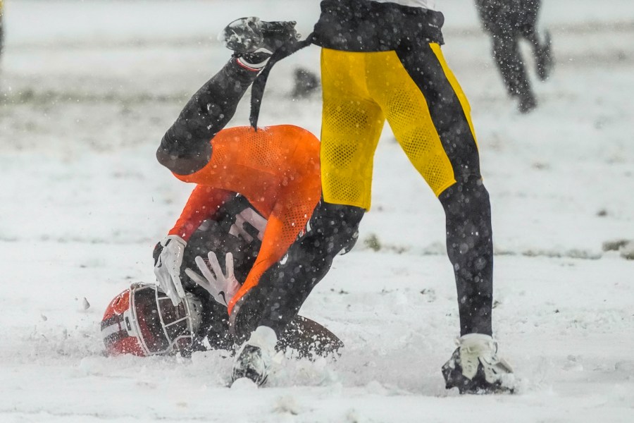 CLEVELAND (AP) — With snow falling, Nick Chubb plowed forward.