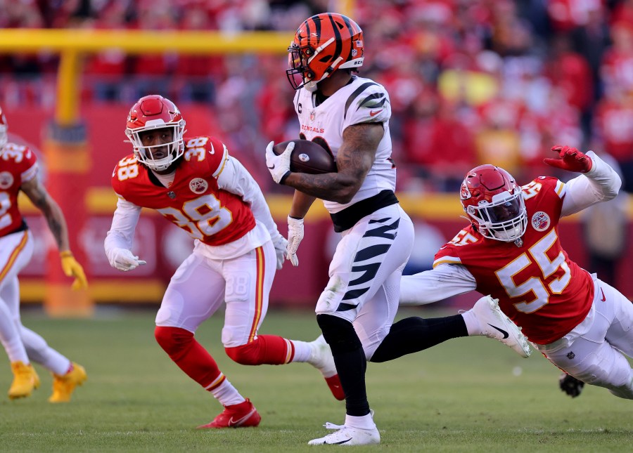 In the first meeting between the teams, the Bengals beat the Chiefs on Jan. 2 in Cincinnati in a back-and-forth thriller that ended when rookie Evan McPherson drilled a 20-yard field goal as time expired. QB Joe Burrow threw for 446 yards and four touchdowns, most of it going to wide receiver Ja’Marr Chase.