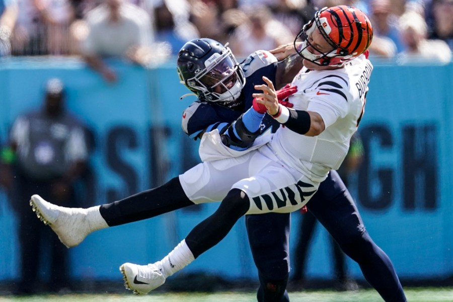 Tennessee played without a pair of offensive starters with left guard Peter Skoronski missing his third game recovering from an appendectomy, and wide receiver Treylon Burks out with an injured left knee. It didn’t matter as Tennessee sacked Joe Burrow three times and stripped him of the ball.