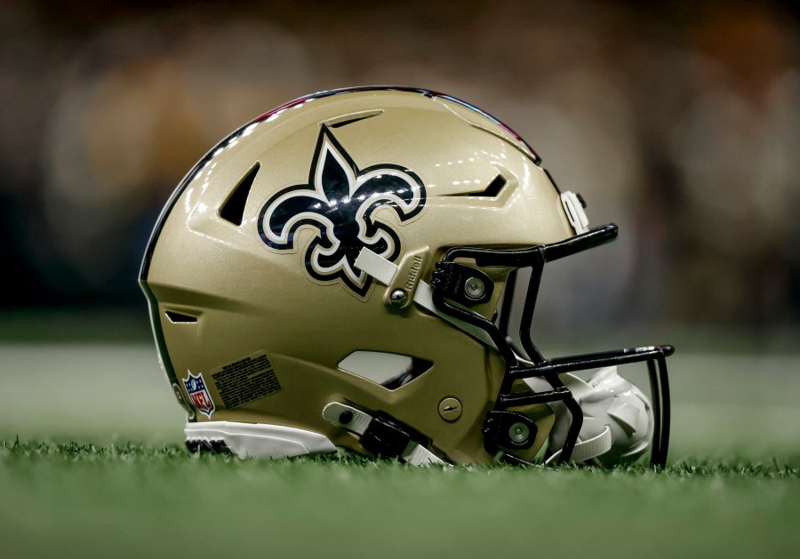 NEW ORLEANS, LOUISIANA - DECEMBER 29: A detail of a New Orleans Saints helmet on the field during the first half of a game against the Las Vegas Raiders at the Caesars Superdome on December 29, 2024 in New Orleans, Louisiana. (Photo by Derick E. Hingle/Getty Images)