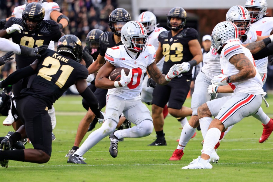 WEST LAFAYETTE, Indiana (WCMH) — No. 3 Ohio State is down to its fourth-string running back against Purdue. The Buckeyes lead the Boilermakers 20-0 at halftime.