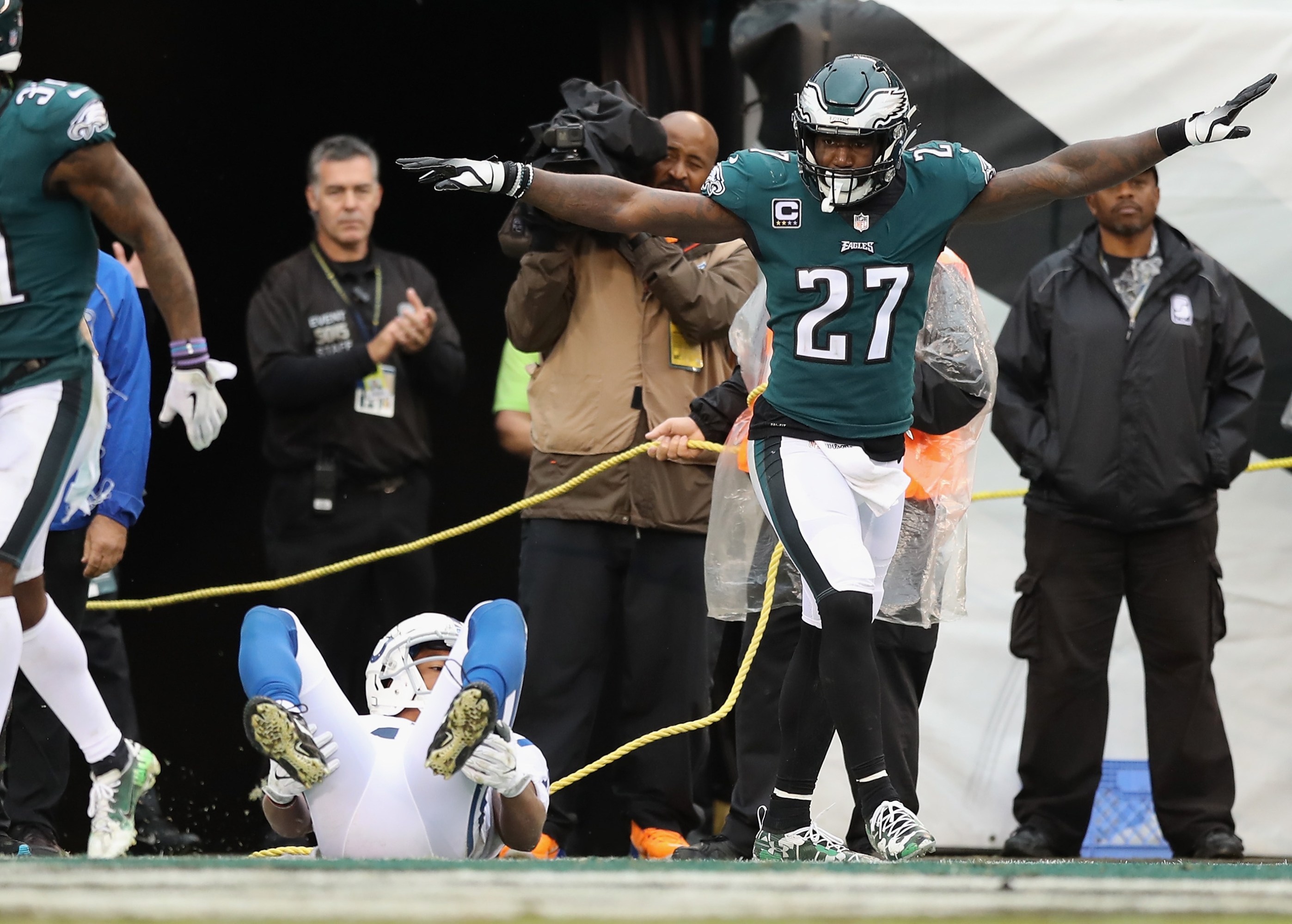 PHILADELPHIA, PA – SEPTEMBER 23: Defensive back Malcolm Jenkins #27 of the Philadelphia Eagles celebrates breaking up a pass intended for wide receiver Ryan Grant #11 of the Indianapolis Colts during the fourth quarter at Lincoln Financial Field on September 23, 2018 in Philadelphia, Pennsylvania. The Philadelphia Eagles won 20-16. (Photo by Elsa/Getty Images)