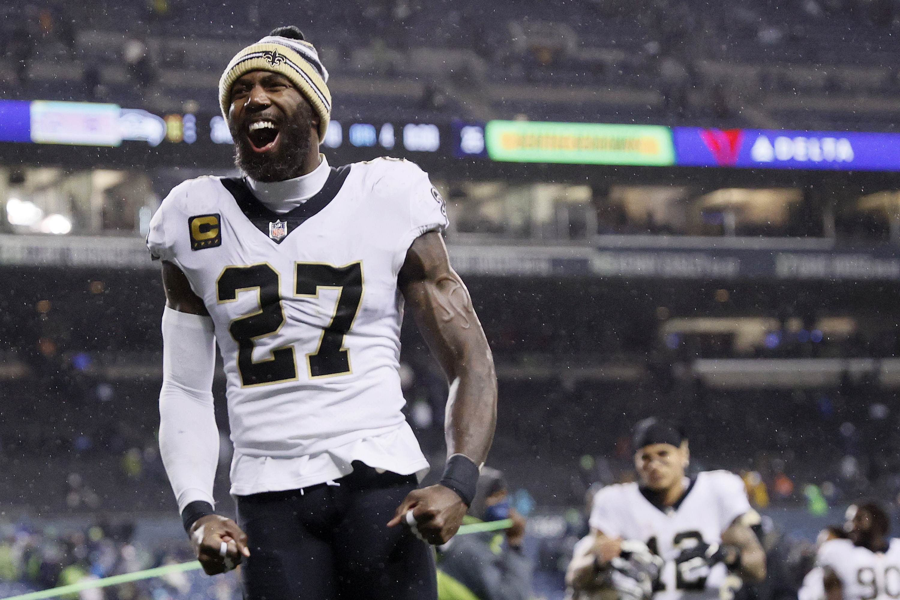 SEATTLE, WASHINGTON – OCTOBER 25: Malcolm Jenkins #27 of the New Orleans Saints reacts after beating the Seattle Seahawks 13-10 at Lumen Field on October 25, 2021 in Seattle, Washington. (Photo by Steph Chambers/Getty Images)