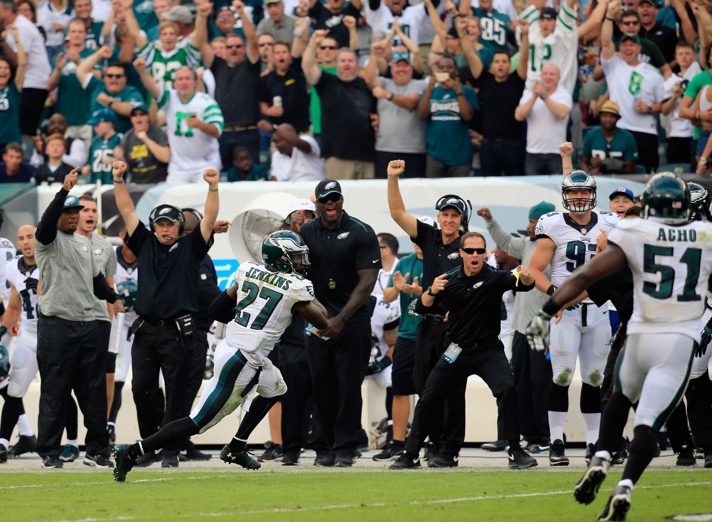 PHILADELPHIA, PA – SEPTEMBER 21: Malcolm Jenkins #27 of the Philadelphia Eagles intercepts the ball against the Washington Redskins in the fourth quarter at Lincoln Financial Field on September 21, 2014 in Philadelphia, Pennsylvania. (Photo by Rob Carr/Getty Images)