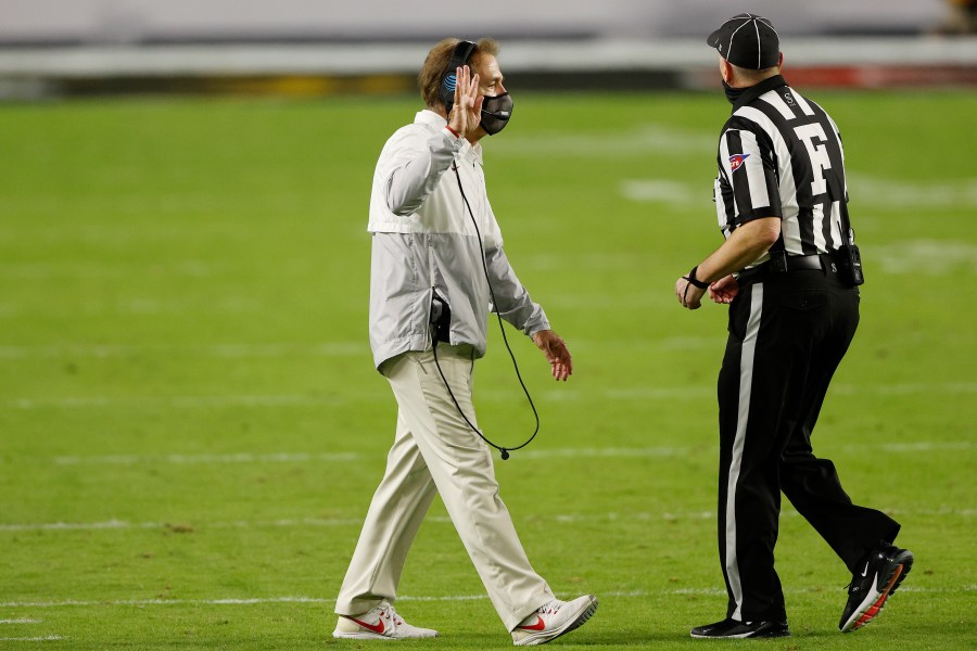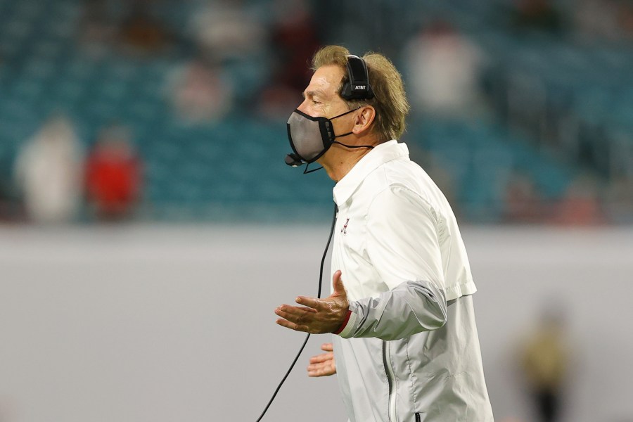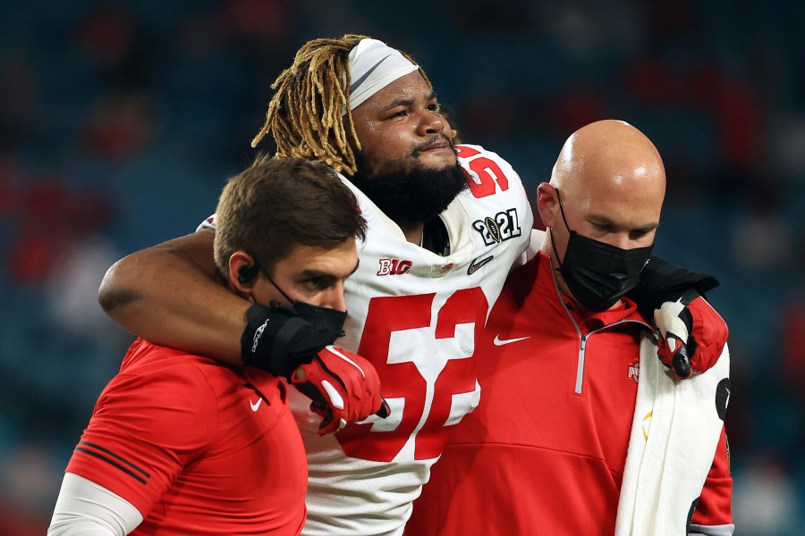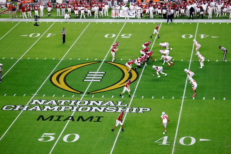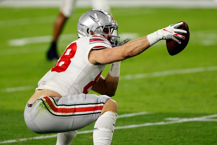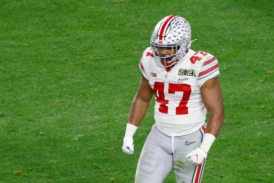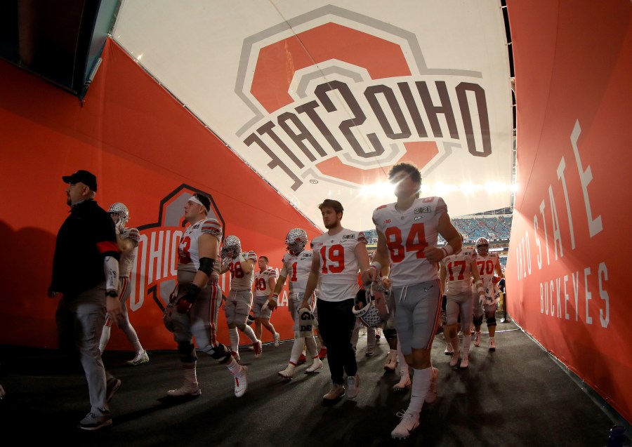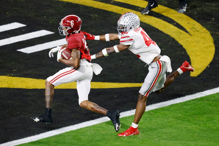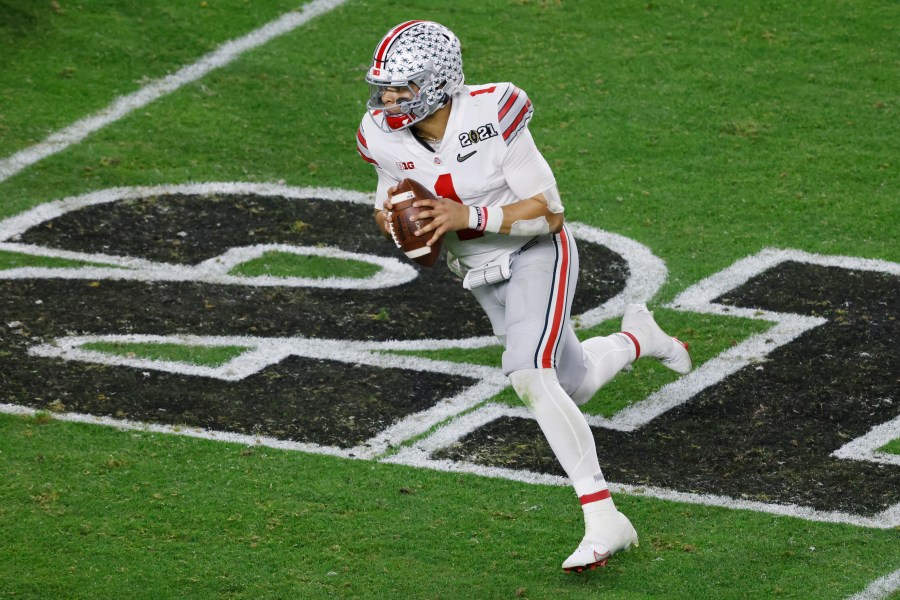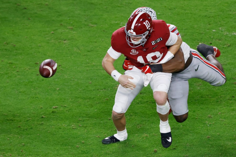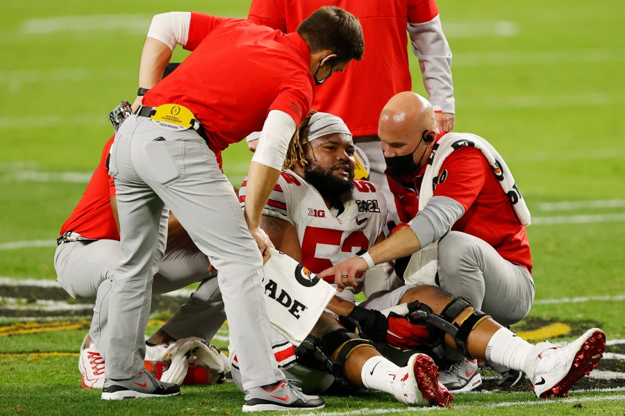 MIAMI GARDENS, FLORIDA – JANUARY 11: DeVonta Smith #6 of the Alabama Crimson Tide rushes for a five yard touchdown during the second quarter of the College Football Playoff National Championship game against the Ohio State Buckeyes at Hard Rock Stadium on January 11, 2021 in Miami Gardens, Florida. (Photo by Mike Ehrmann/Getty Images) MIAMI GARDENS, FLORIDA – JANUARY 11: Master Teague III #33 of the Ohio State Buckeyes rushes for an eight yard touchdown during the first quarter of the College Football Playoff National Championship game against the Alabama Crimson Tide at Hard Rock Stadium on January 11, 2021 in Miami Gardens, Florida. (Photo by Mike Ehrmann/Getty Images) MIAMI GARDENS, FLORIDA – JANUARY 11: The Ohio State Buckeyes take the field prior to the College Football Playoff National Championship game against the Alabama Crimson Tide at Hard Rock Stadium on January 11, 2021 in Miami Gardens, Florida. (Photo by Mike Ehrmann/Getty Images) MIAMI GARDENS, FLORIDA – JANUARY 11: Justin Hilliard #47 of the Ohio State Buckeyes reacts to a tackle during the first quarter of the College Football Playoff National Championship game against the Alabama Crimson Tide at Hard Rock Stadium on January 11, 2021 in Miami Gardens, Florida. (Photo by Sam Greenwood/Getty Images) MIAMI GARDENS, FLORIDA – JANUARY 11: Justin Hilliard #47 of the Ohio State Buckeyes reacts to a tackle during the first quarter of the College Football Playoff National Championship game against the Alabama Crimson Tide at Hard Rock Stadium on January 11, 2021 in Miami Gardens, Florida. (Photo by Michael Reaves/Getty Images) MIAMI GARDENS, FLORIDA – JANUARY 11: Justin Hilliard #47 of the Ohio State Buckeyes tackles Najee Harris #22 of the Alabama Crimson Tide during the first quarter of the College Football Playoff National Championship game at Hard Rock Stadium on January 11, 2021 in Miami Gardens, Florida. (Photo by Michael Reaves/Getty Images) MIAMI GARDENS, FLORIDA – JANUARY 11: Justin Hilliard #47 of the Ohio State Buckeyes tackles Najee Harris #22 of the Alabama Crimson Tide during the first quarter of the College Football Playoff National Championship game at Hard Rock Stadium on January 11, 2021 in Miami Gardens, Florida. (Photo by Mike Ehrmann/Getty Images) MIAMI GARDENS, FLORIDA – JANUARY 11: John Metchie III #8 of the Alabama Crimson Tide rushes during the first quarter of the College Football Playoff National Championship game against the Ohio State Buckeyes at Hard Rock Stadium on January 11, 2021 in Miami Gardens, Florida. (Photo by Mike Ehrmann/Getty Images) MIAMI GARDENS, FLORIDA – JANUARY 11: DeVonta Smith #6 of the Alabama Crimson Tide is wrapped up by Marcus Williamson #21 of the Ohio State Buckeyesduring the first quarter of the College Football Playoff National Championship game at Hard Rock Stadium on January 11, 2021 in Miami Gardens, Florida. (Photo by Sam Greenwood/Getty Images) MIAMI GARDENS, FLORIDA – JANUARY 11: Master Teague III #33 of the Ohio State Buckeyes rushes for an eight yard touchdown during the first quarter of the College Football Playoff National Championship game against the Alabama Crimson Tide at Hard Rock Stadium on January 11, 2021 in Miami Gardens, Florida. (Photo by Sam Greenwood/Getty Images) MIAMI GARDENS, FLORIDA – JANUARY 11: Master Teague III #33 of the Ohio State Buckeyes rushes for an eight yard touchdown during the first quarter of the College Football Playoff National Championship game against the Alabama Crimson Tide at Hard Rock Stadium on January 11, 2021 in Miami Gardens, Florida. (Photo by Sam Greenwood/Getty Images) MIAMI GARDENS, FLORIDA – JANUARY 11: Head coach Ryan Day of the Ohio State Buckeyes reacts with Justin Fields #1 during the first quarter of the College Football Playoff National Championship game against the Alabama Crimson Tide at Hard Rock Stadium on January 11, 2021 in Miami Gardens, Florida. (Photo by Michael Reaves/Getty Images) MIAMI GARDENS, FLORIDA – JANUARY 11: Justin Fields #1 of the Ohio State Buckeyes celebrates a touchdown during the first quarter of the College Football Playoff National Championship game against the Alabama Crimson Tide at Hard Rock Stadium on January 11, 2021 in Miami Gardens, Florida. (Photo by Kevin C. Cox/Getty Images) MIAMI GARDENS, FLORIDA – JANUARY 11: Jeremy Ruckert #88 of the Ohio State Buckeyes reacts during the first quarter of the College Football Playoff National Championship game against the Alabama Crimson Tide at Hard Rock Stadium on January 11, 2021 in Miami Gardens, Florida. (Photo by Sam Greenwood/Getty Images) MIAMI GARDENS, FLORIDA – JANUARY 11: Jeremy Ruckert #88 of the Ohio State Buckeyes reaches for a catch ahead of Christian Harris #8 of the Alabama Crimson Tide during the first quarter of the College Football Playoff National Championship game at Hard Rock Stadium on January 11, 2021 in Miami Gardens, Florida. (Photo by Michael Reaves/Getty Images) MIAMI GARDENS, FLORIDA – JANUARY 11: Jeremy Ruckert #88 of the Ohio State Buckeyes reaches for a catch ahead of Christian Harris #8 of the Alabama Crimson Tide during the first quarter of the College Football Playoff National Championship game at Hard Rock Stadium on January 11, 2021 in Miami Gardens, Florida. (Photo by Michael Reaves/Getty Images) MIAMI GARDENS, FLORIDA – JANUARY 11: Master Teague III #33 of the Ohio State Buckeyes rushes for an eight yard touchdown during the first quarter of the College Football Playoff National Championship game against the Alabama Crimson Tide at Hard Rock Stadium on January 11, 2021 in Miami Gardens, Florida. (Photo by Mike Ehrmann/Getty Images) MIAMI GARDENS, FLORIDA – JANUARY 11: Jeremy Ruckert #88 of the Ohio State Buckeyes reacts during the first quarter of the College Football Playoff National Championship game against the Alabama Crimson Tide at Hard Rock Stadium on January 11, 2021 in Miami Gardens, Florida. (Photo by Mike Ehrmann/Getty Images) MIAMI GARDENS, FLORIDA – 