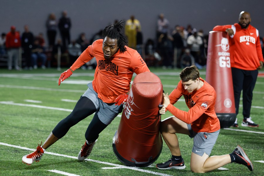 COLUMBUS, Ohio (WCMH) — Fourteen former Ohio State players showcased their skills Wednesday at Ohio State’s Pro Day, including C.J. Stroud, who could be the No. 1 overall pick.