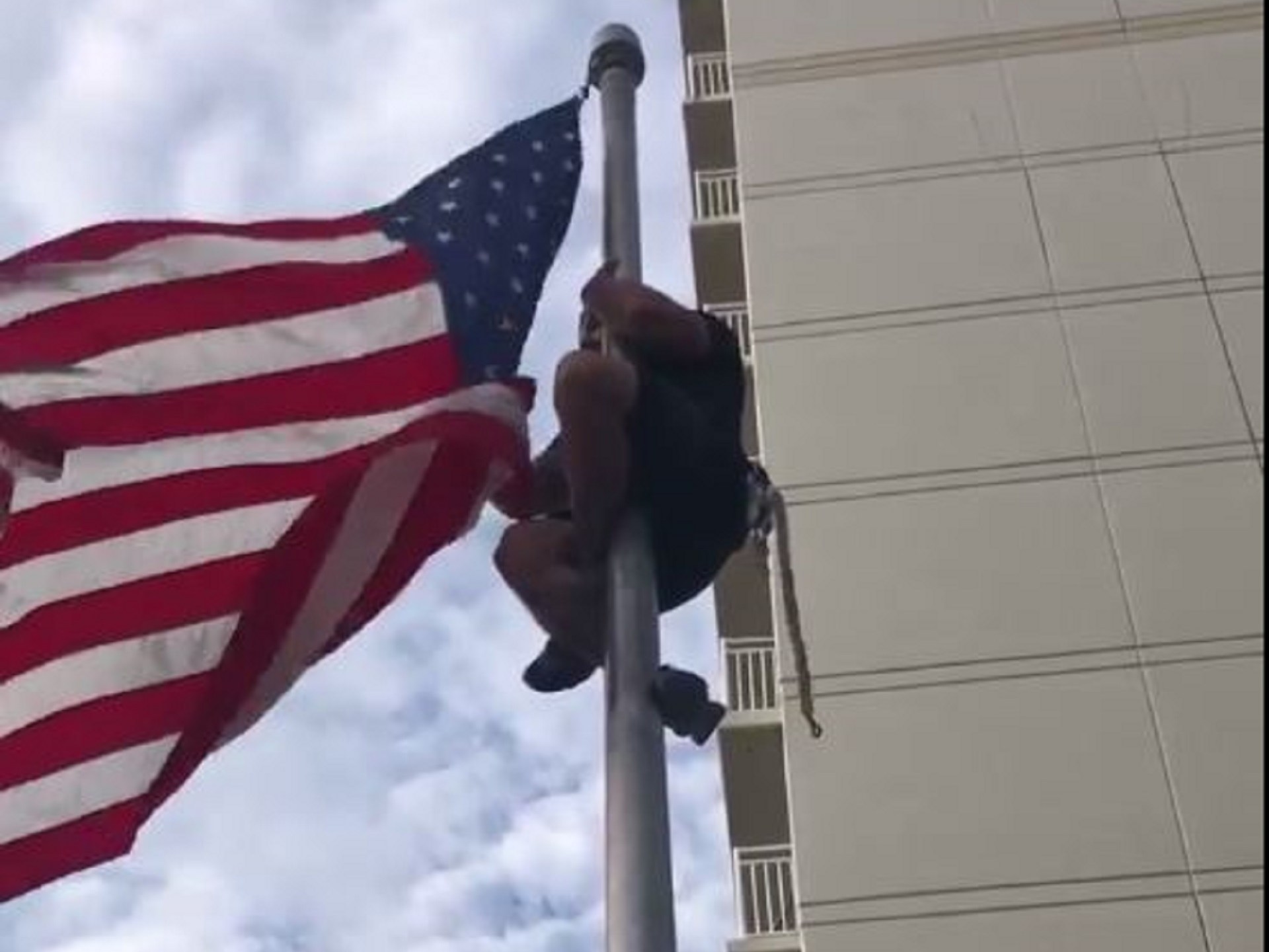 Former Navy SEAL climbs flag pole to fix U.S. flag