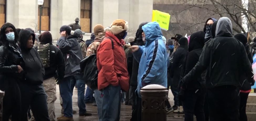 Two sides meet peacefully at protest on snowy Ohio Sunday