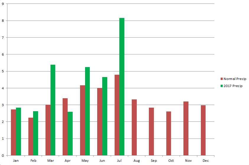 Below the chart shows normal precipitation vs. what we have collected so far in 2017: