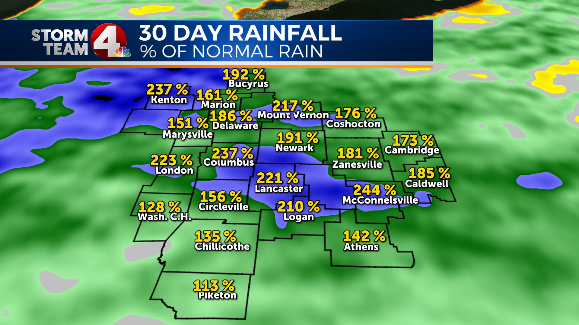 Incredibly enough, a lot of Central Ohio has received double or more of our normal rainfall for the past 30 days.