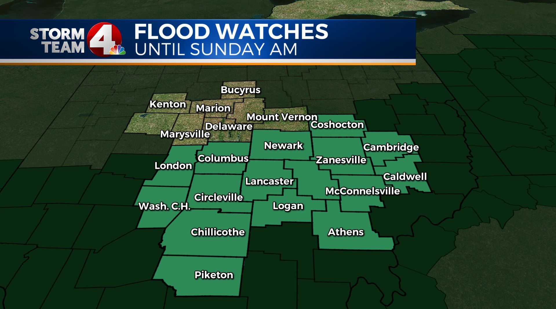 Flood watches currently extend through Sunday morning, with multiple chances of rainfall.